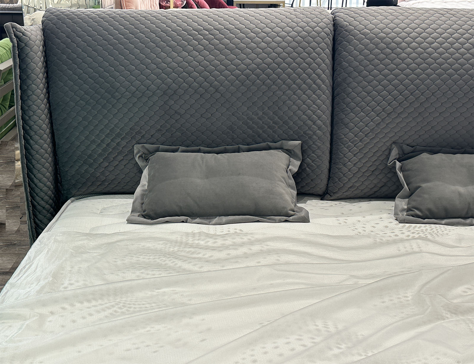 Обивка кровати: модный объемный высококачественный стеганный велюр, легкий в уходе с современной ромбовидной стежкой.