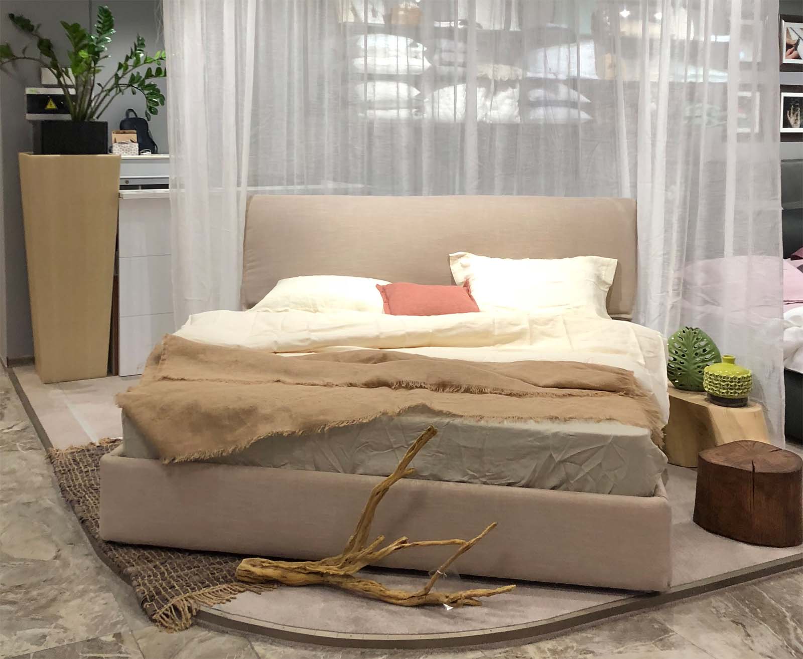 Обивка кровати: 100% натуральный лен светло-бежевого цвета.