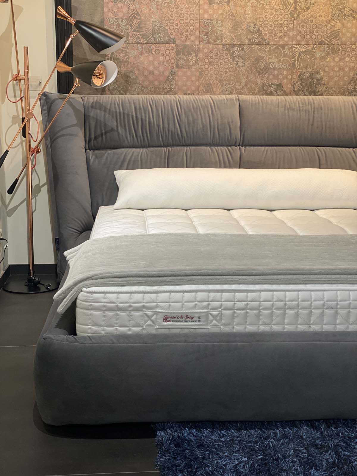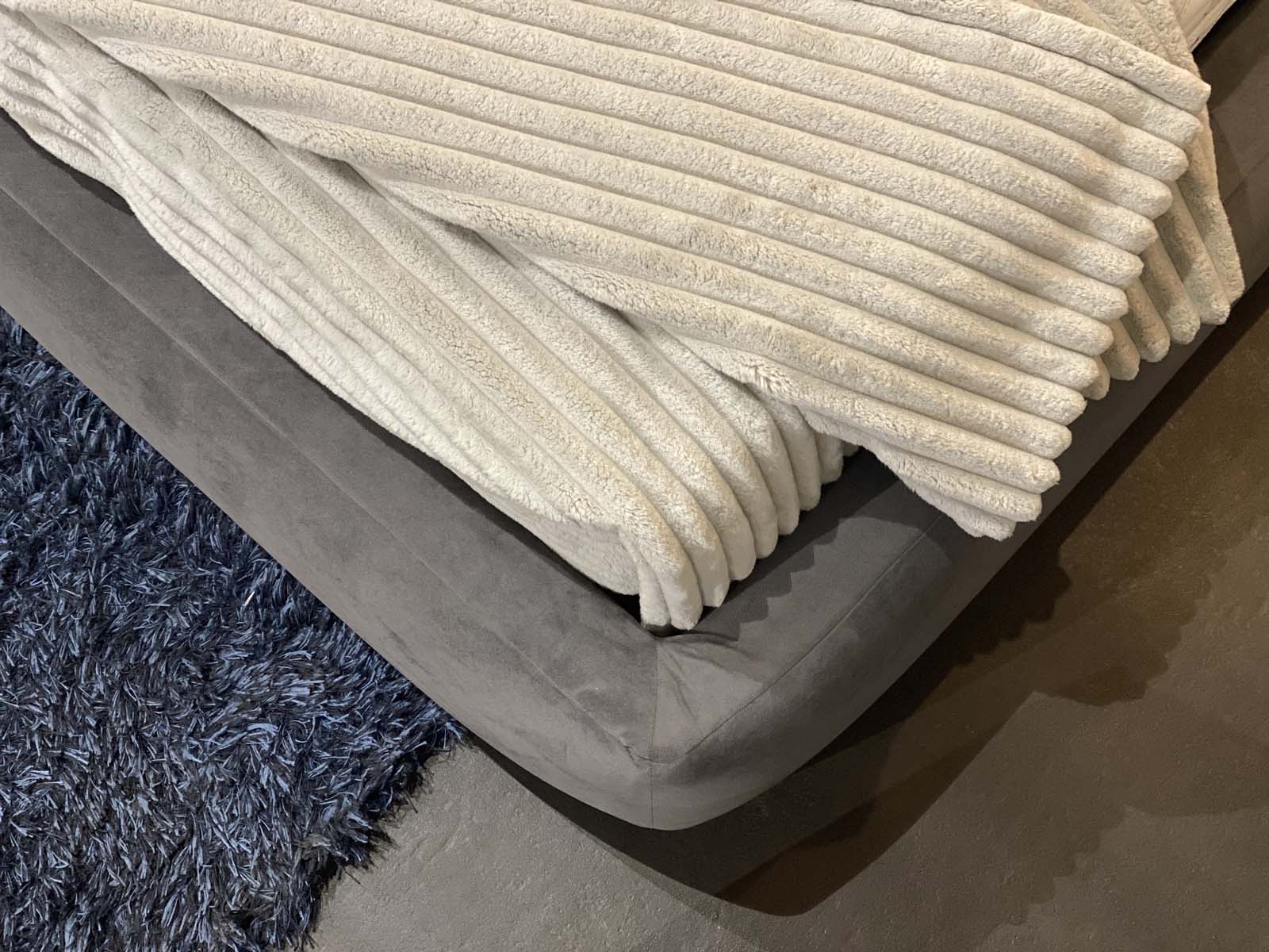 Обивка кровати: высококачественный велюр темно-серого цвета (графит).