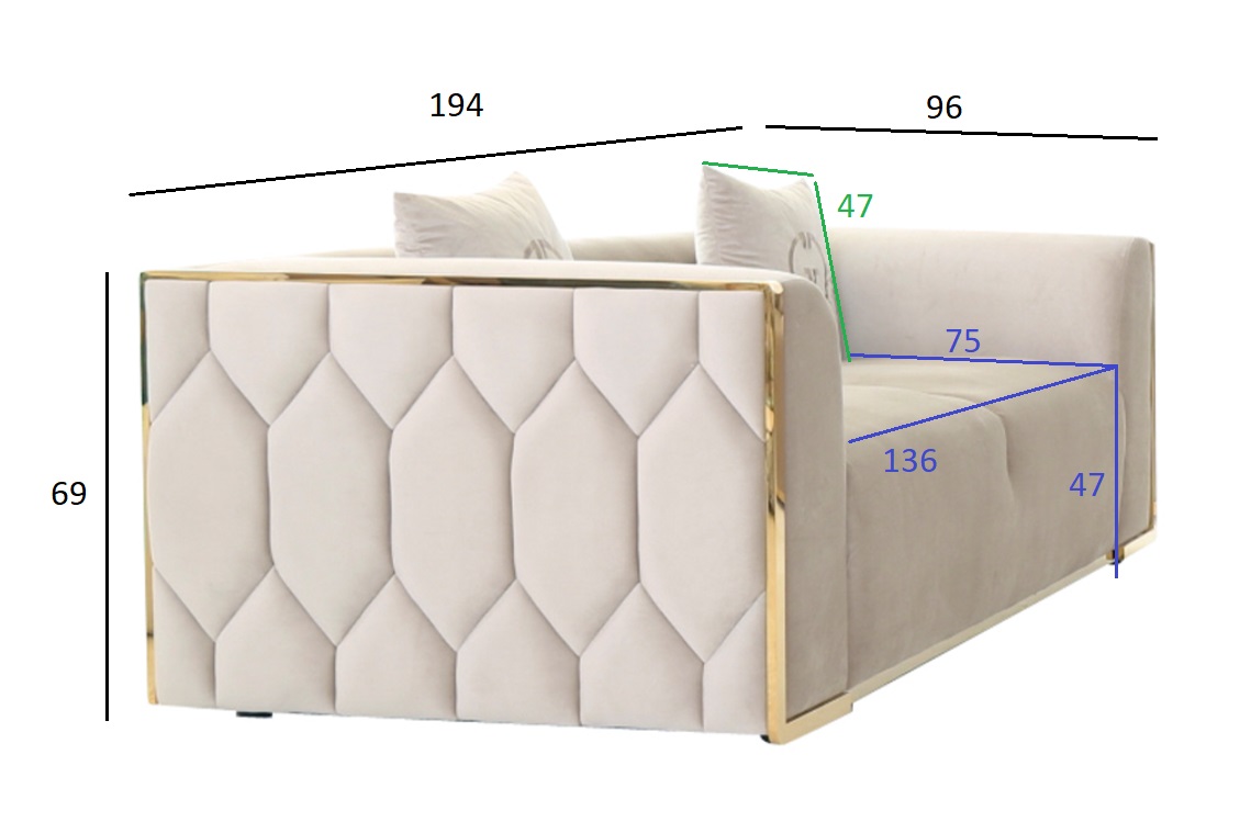 Двухместный бежевый диван из серии BERN является гармоничным сочетанием повышенной комфортности и стильной эргономики. Он задает настроение всему интерьеру, отвечая за общую стилистку и атмосферу в помещении. Бежевый велюровый диван воплотил в себе все лучшие качества мебели в стиле ар-деко – мягкая обивка из дорогого велюра, нейтральный «богатый» цвет, благородный блеск металла. Это эталон элегантного гламура, который идеально впишется в интерьер современной гостиной. Предлагаем купить диван с металлическим каркасом и декоративными подушками. В каталоге также представлены трехместный диван из этой же серии и кресло LOCARNO, которые составят стильный мягкий комплект мебели. Габариты сиденья: ширина 136см, глубина 75см, высота от пола 47см. В комплект входят 2 декоративные подушки 47*47см, обе с логотипом GD (GARDA DECOR). Сочетается с трехместным диваном 102AN-DIV-9173-BEG и креслом LOCARNO 102AN-KRES-905-OLI.
