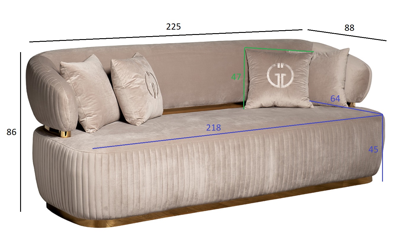 Диван Glarus трехместный, велюр серый 102AN-DIV-1303-SER