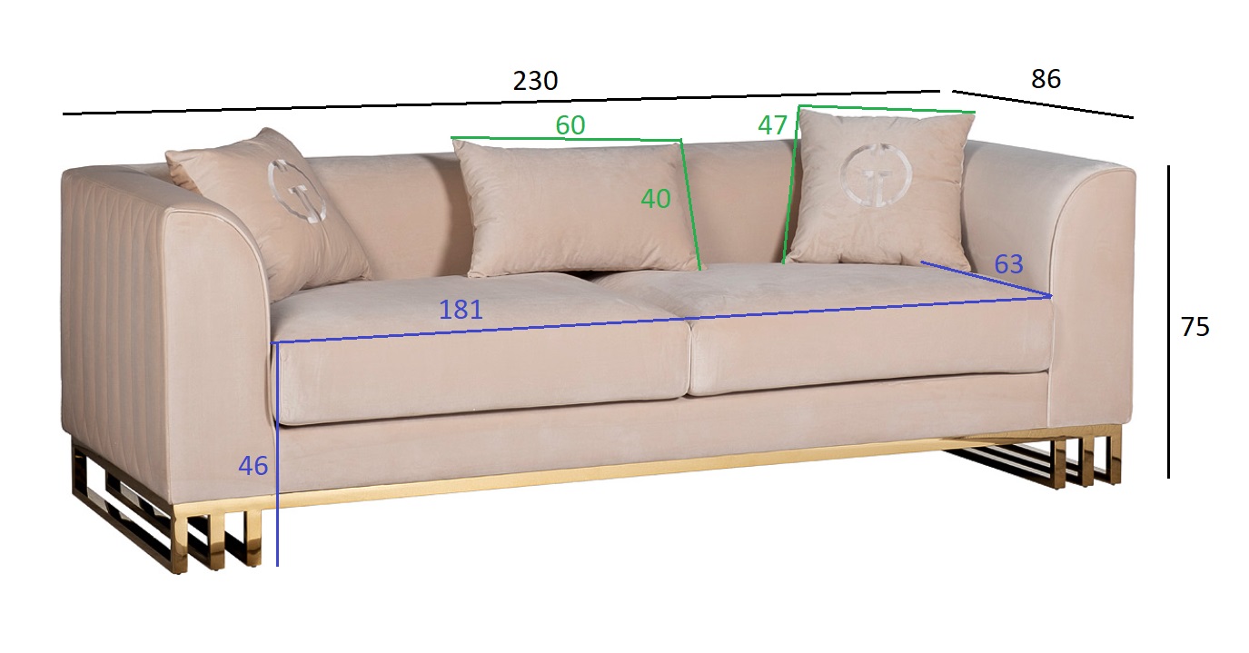 Диван Lucerne трехместный велюр бежевый 102AN-20493