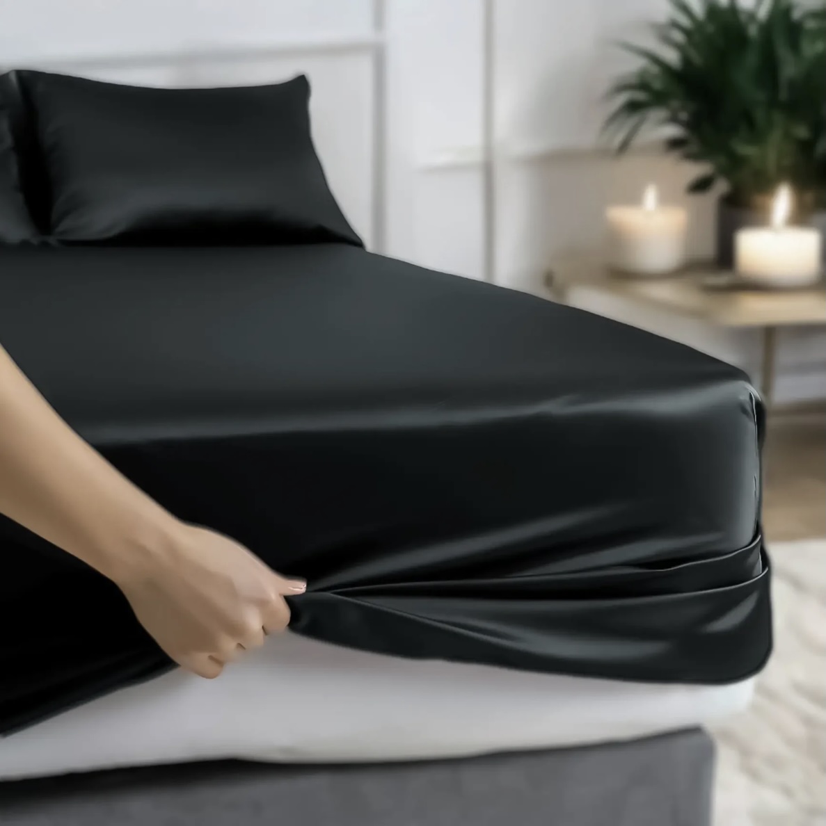 Fitted Sheet 100% Silk Sexy Black