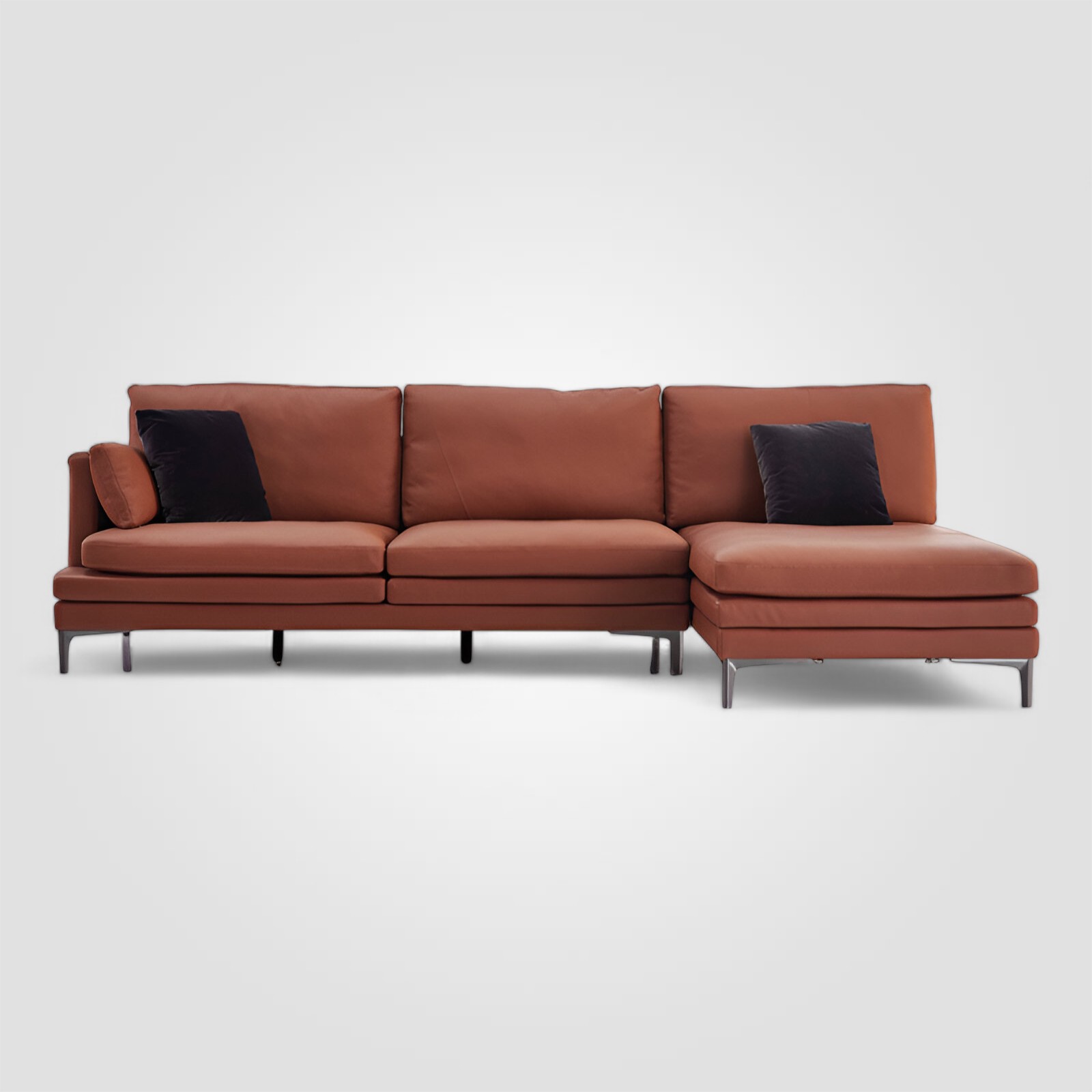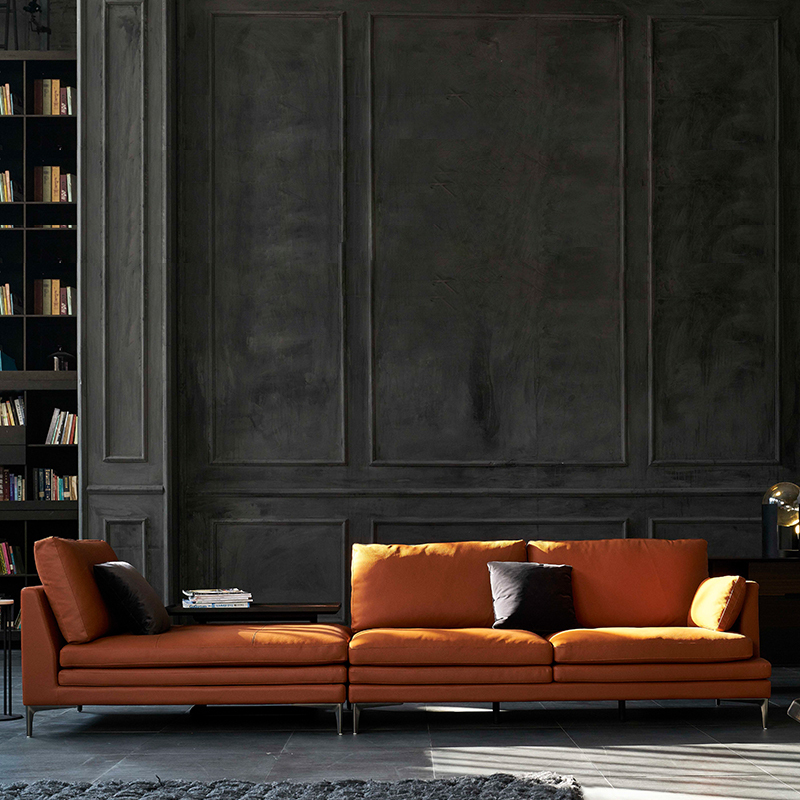 Этот диван станет настоящим украшением любого интерьера благодаря своему яркому оранжевому цвету и оригинальному дизайну. Модули дивана надежно крепятся между собой и позволяют составлять разнообразные композиции.Ультратонкие металлические ножки. Для семей с домашними животными это незаменимый плюс: им не страшны когти вашего питомца. Комбинированная кожа (натуральная+эко). Натуральная — на сиденье и спинке дивана, чтобы основную часть модели можно было со временем отреставрировать и привести в первоначальный внешний вид,  экокожа — на внешней стороне, чтобы предотвратить истирание материала при перестановке в доме. Модель представлена в обивке оранжевого, графитового, песочного оттенков и цвете коньяка.
