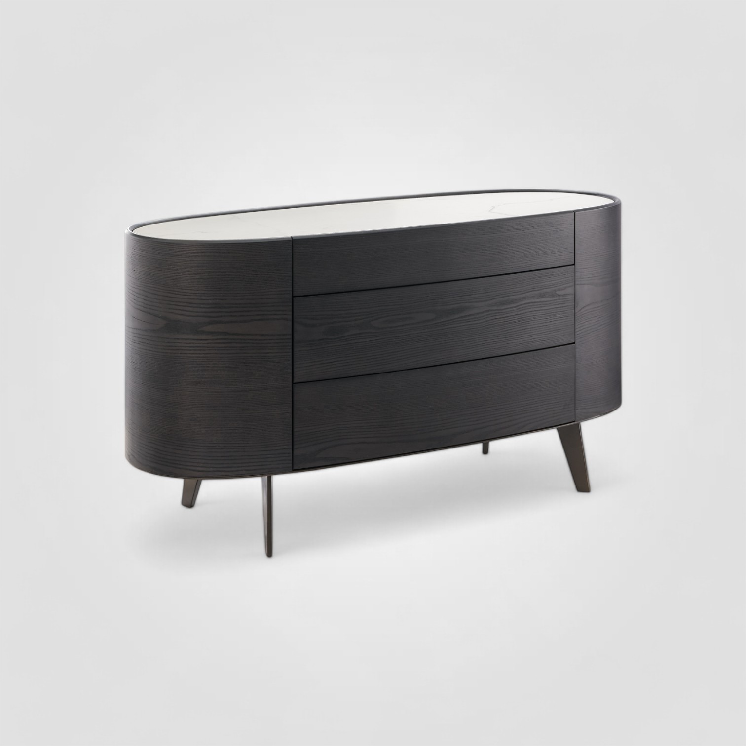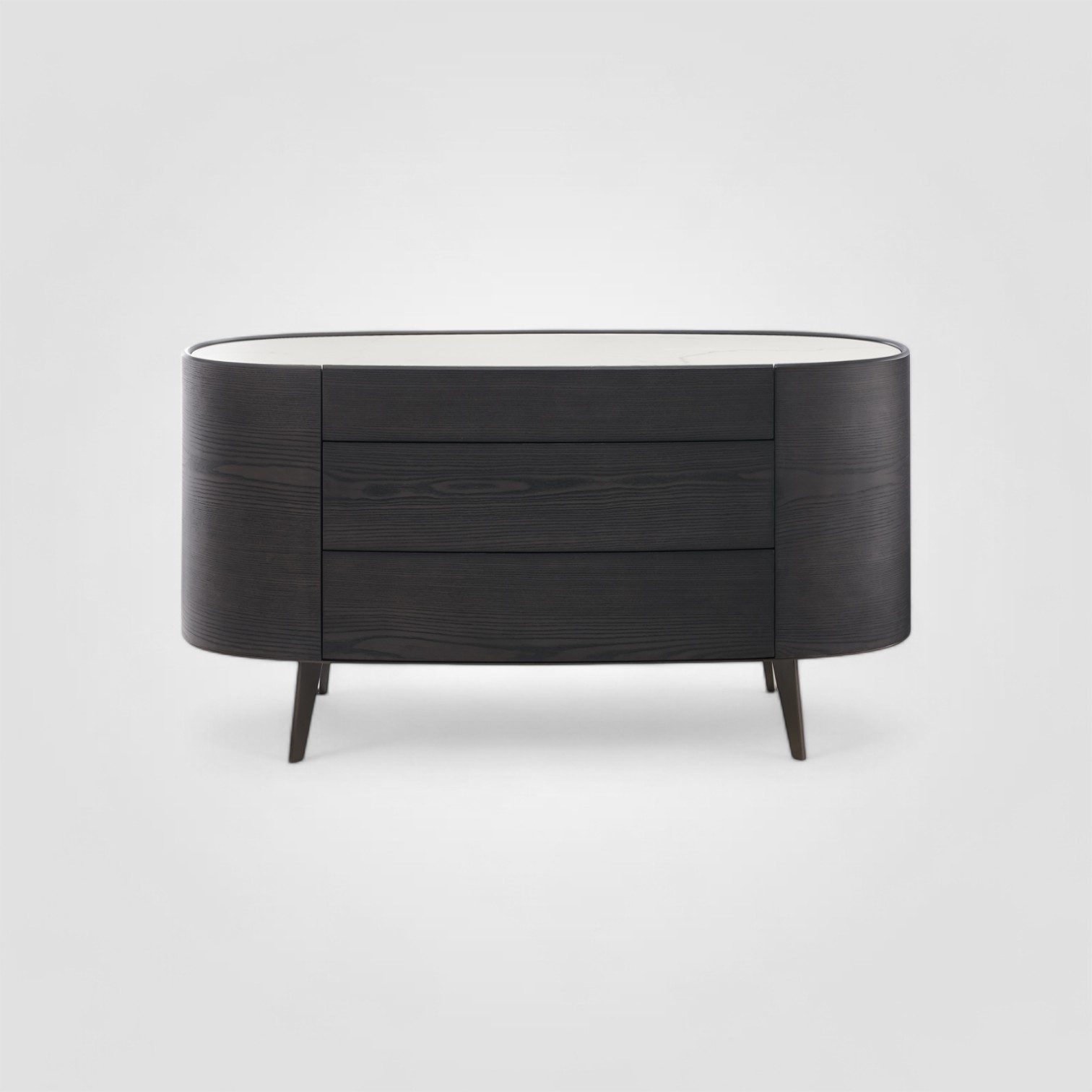 Комод KERBY - идеальное дополнение для спальни. Создавая гармоничный интерьер, KERBY становится не только функциональной частью комнаты, но и элегантным акцентом. Его черный цвет придает утонченность и выразительность всему пространству. Благодаря своему стильному дизайну и удобным ящикам, этот комод станет неотъемлемой частью интерьера каждой спальни. Независимо от стиля вашей комнаты, черный комод из МДФ будет прекрасно смотреться и дополнит его изысканным шармом.