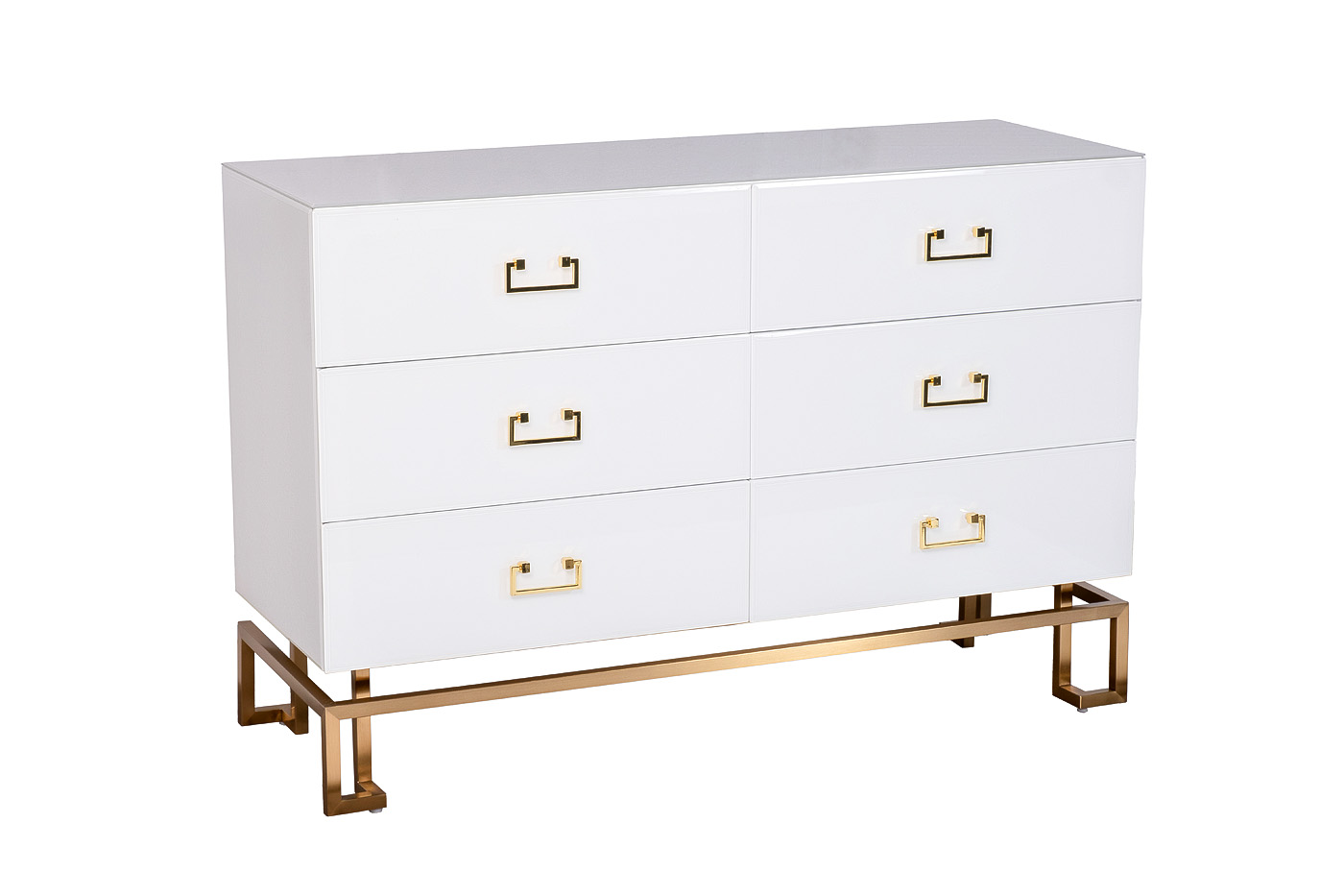 Комод 6 ящиков белый/золото KFG089