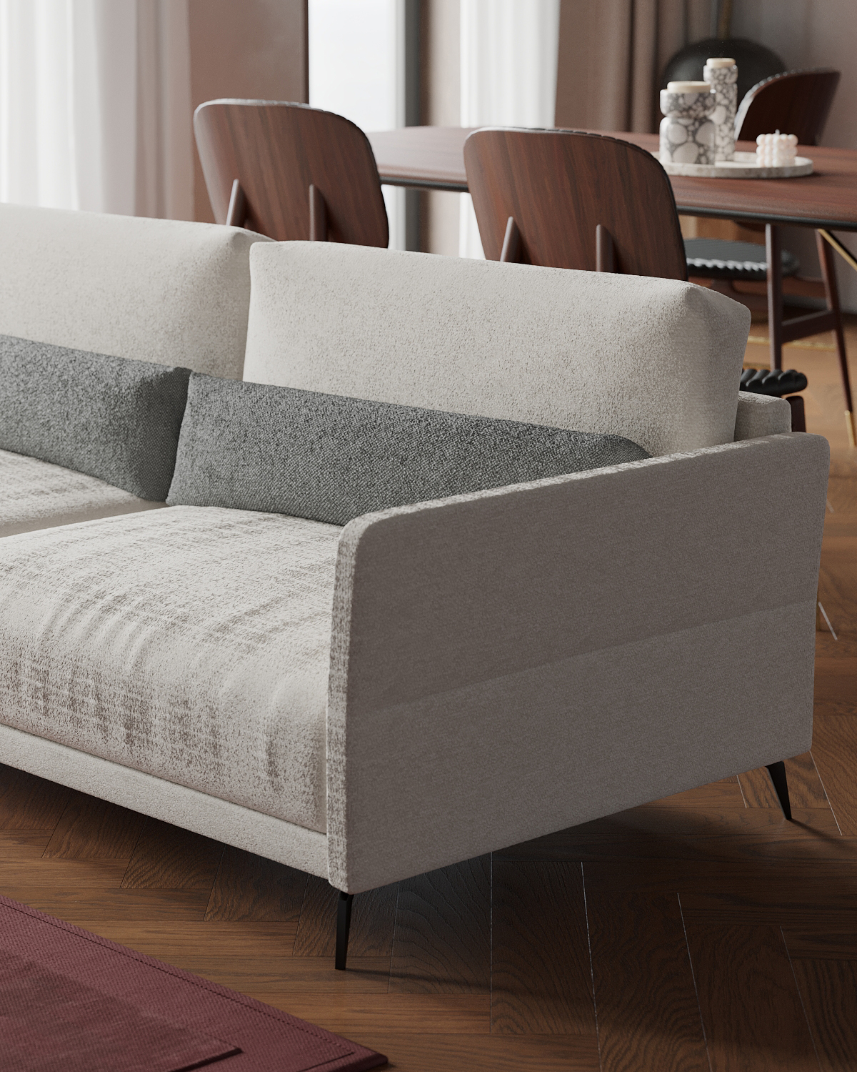 Диван из коллекции Linate выполнен в современном минималистичном стиле. Благодаря своей лаконичности, он идеально дополнит практически любой дизайн интерьера: от классики до лофта. Очень уютные, мягкие подушки в тёмно-серой обивке обеспечат вам необходимые условия для комфортного отдыха. Тонкие ножки контрастируют с большим объемом дивана и создают ощущение лёгкости. В комплект также входят три узкие подушки, при помощи которых вы можете адаптировать диван под свои нужды: например, сделать выше основные подушки, подложив под них маленькие, или же обеспечить дополнительную поддержку для вашей спины. В ассортименте представлены темно-серый, светло-серый и бежевый диваны.Вся коллекция LINATE