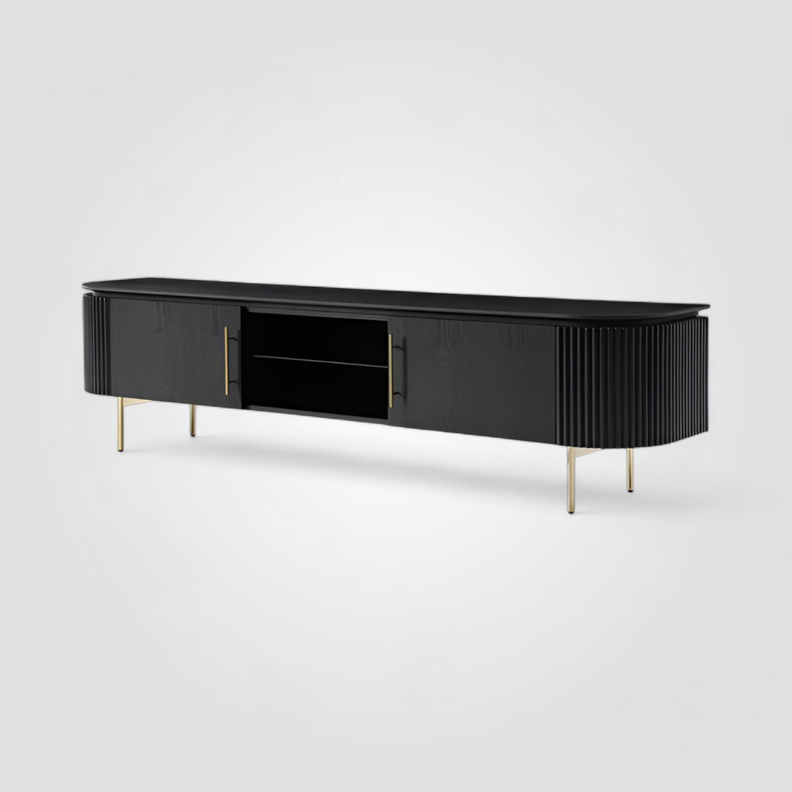 Вашему вниманию представляется элегантная TV тумба MORISONE под телевизор, выполненная из высококачественного шпона и МДФ. Она состоит из черного корпуса, который идеально сочетается с современным интерьером. Тумба имеет стеклянные полки, которые позволяют удобно разместить необходимое оборудование и аксессуары. Что особенно важно, она является частью одной коллекции с комодом, что создает гармоничный и стильный облик вашего жилища.MORISONE незаменимым акцентом в вашей гостиной, дополнив интерьер и придав ему изысканный вид.