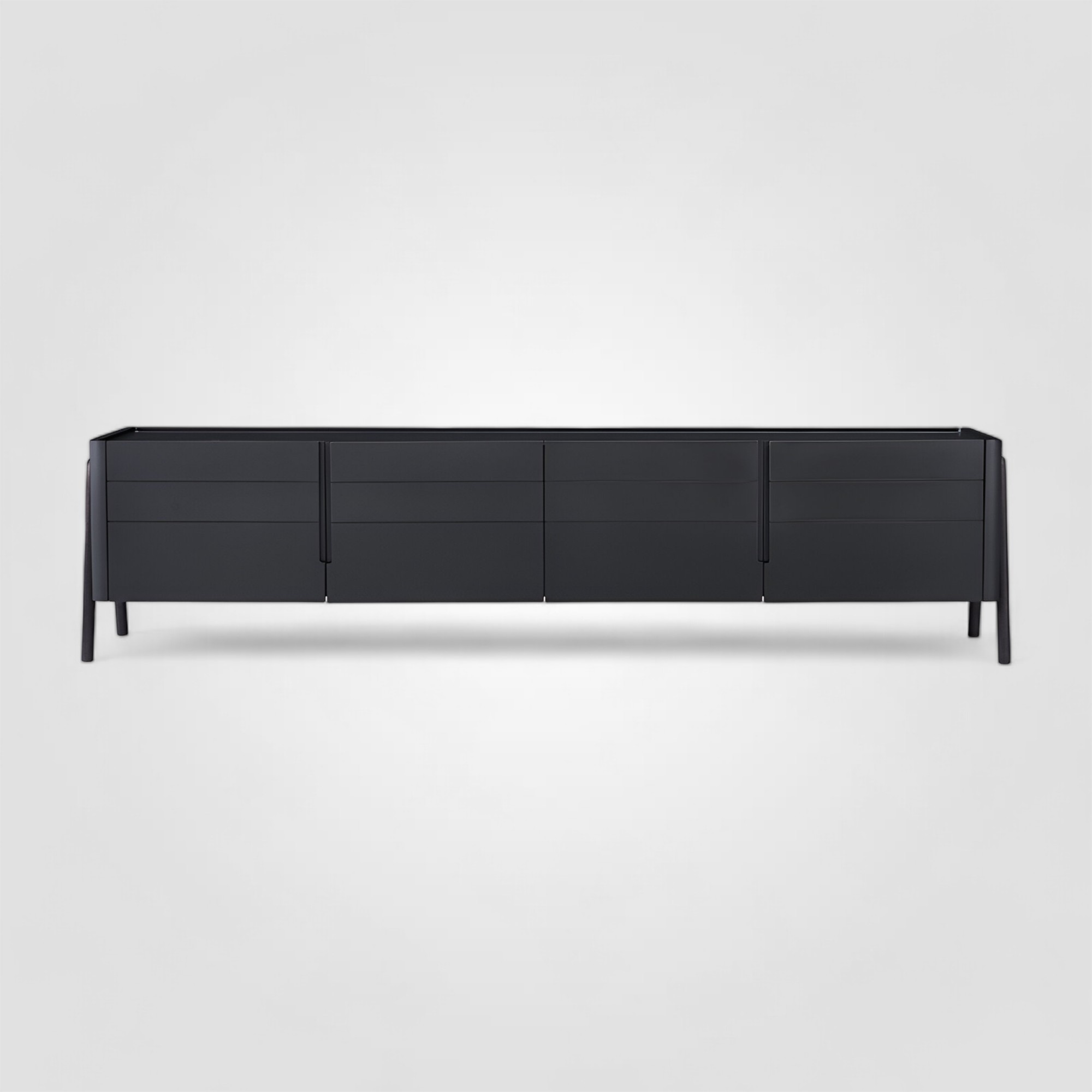 ТВ тумба из массива ясень чёрного цвета - это стильное и практичное решение для твоей гостиной. Ясень - это прочный и долговечный материал, который прекрасно сочетается с любым интерьером. Чёрный цвет придаст твоей тумбе элегантность и изысканность. Она станет не только функциональной частью твоего пространства, но и украшением, которое подчеркнет твой хороший вкус и чувство стиля. На тумбе можно разместить телевизор, а также хранить различные предметы, необходимые для комфортного просмотра.