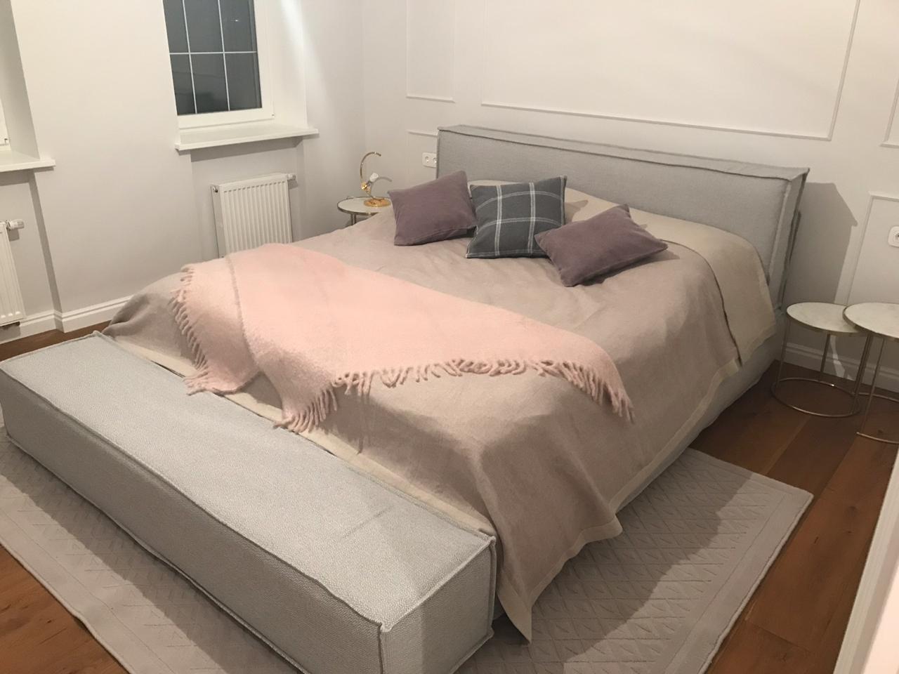 Caracteristici de design: un pat confortabil și voluminos cu o pernă mare mobilă pe post de tăblie.