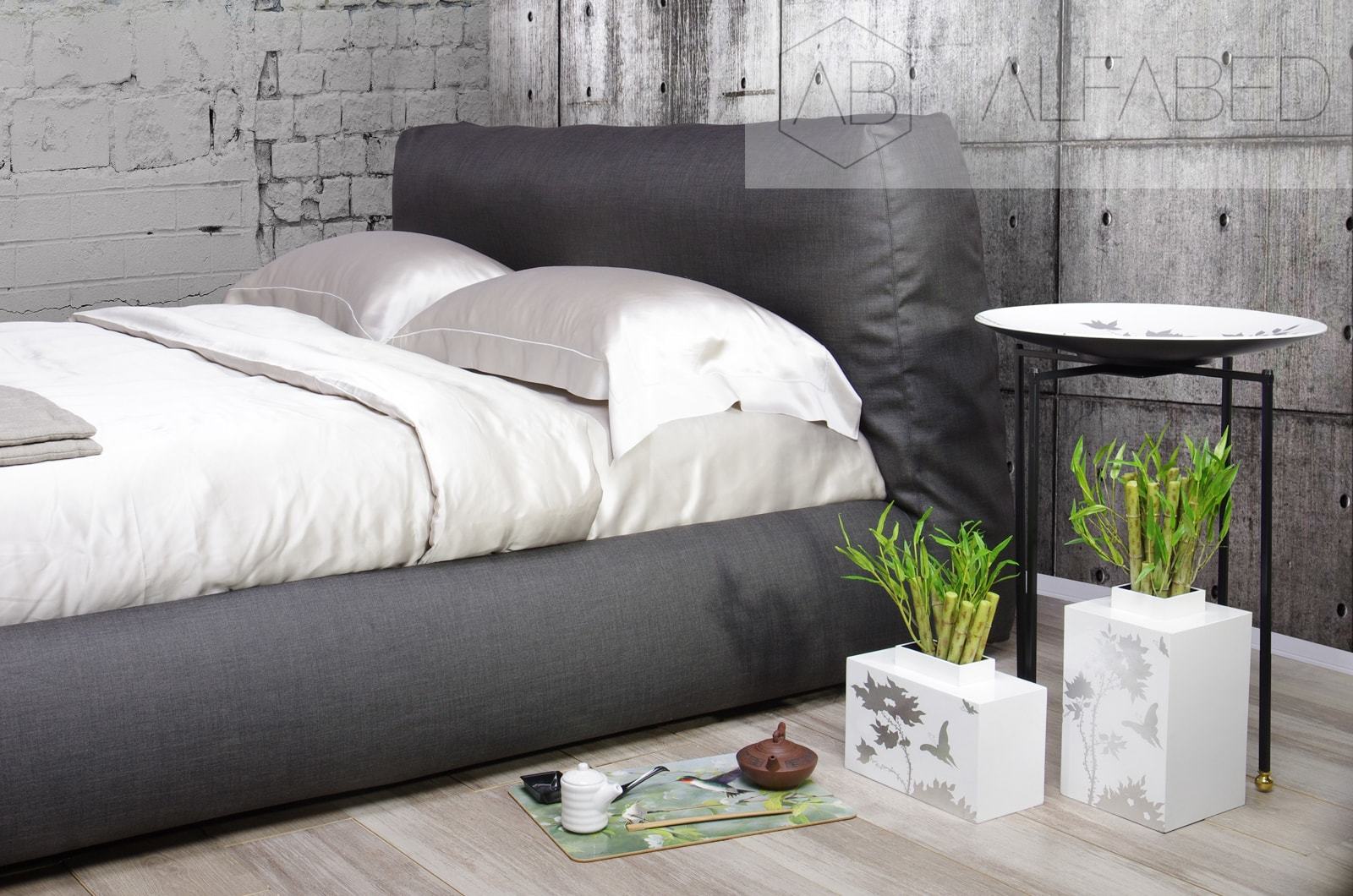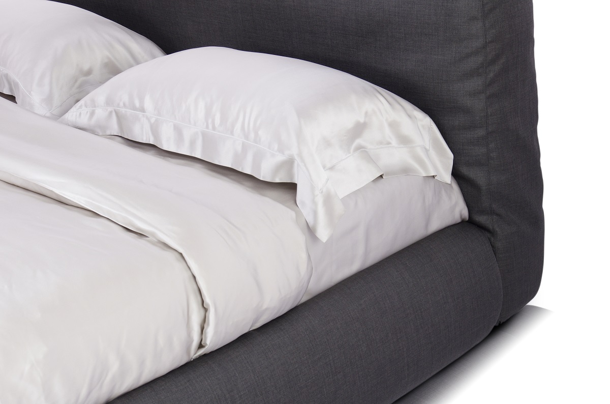 Особенности дизайна: уютная объемная кровать с большой интегрированной подушкой в качестве изголовья.