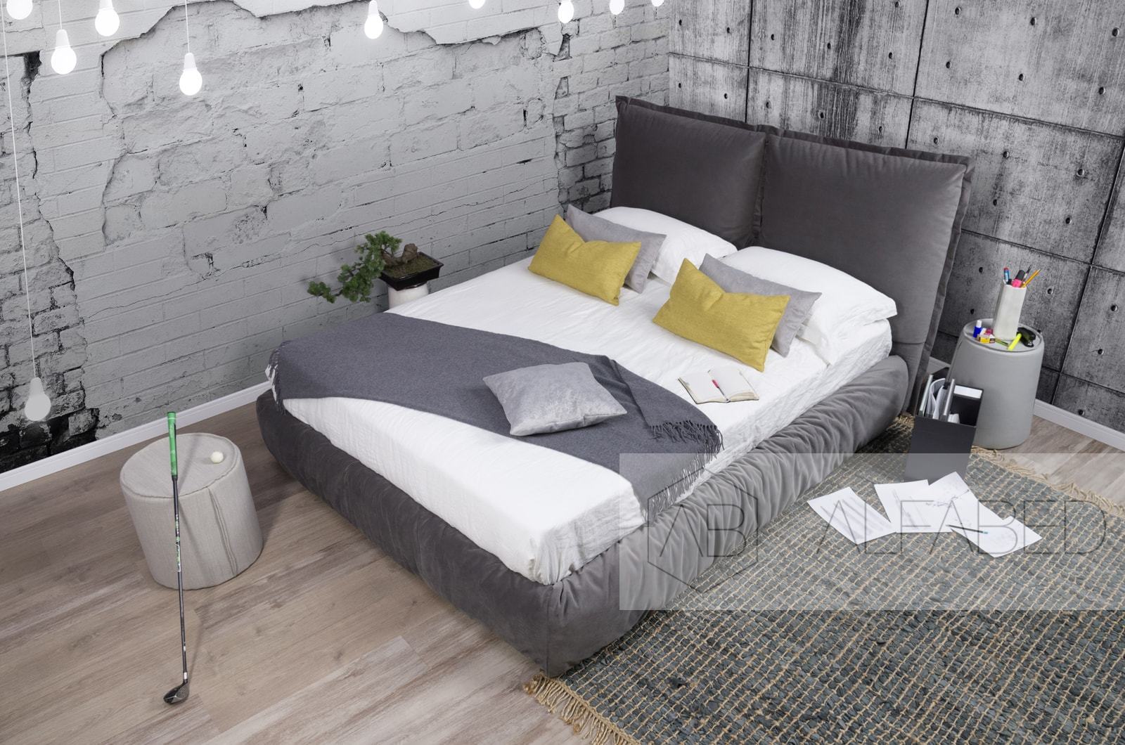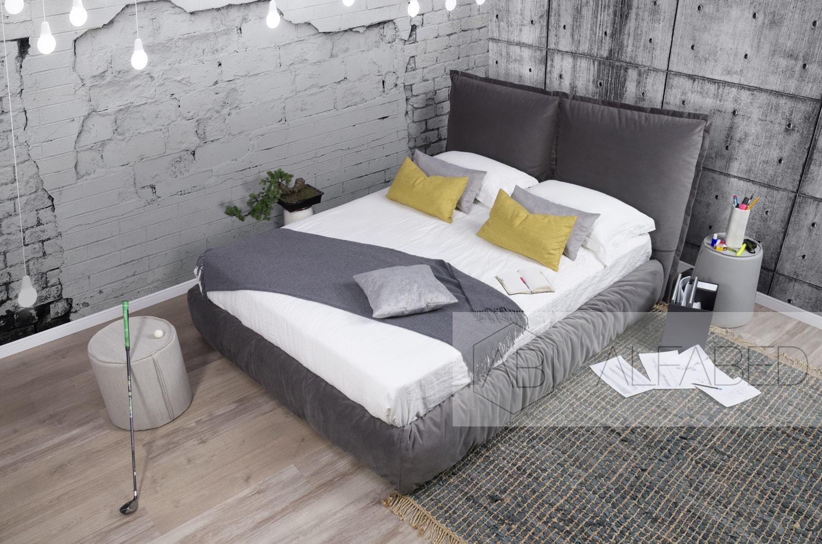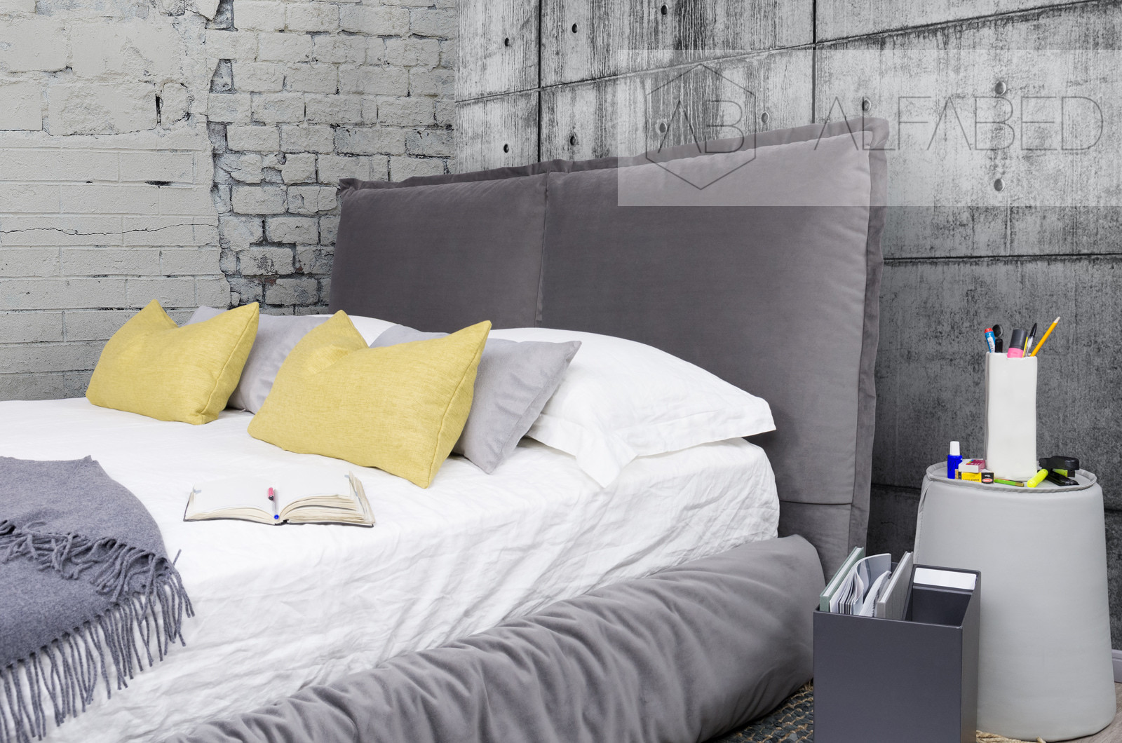 Caracteristici de design: un pat tapițat confortabil, voluminos, cu pereți laterali umflați și o pernă mare integrată ca tăblie.