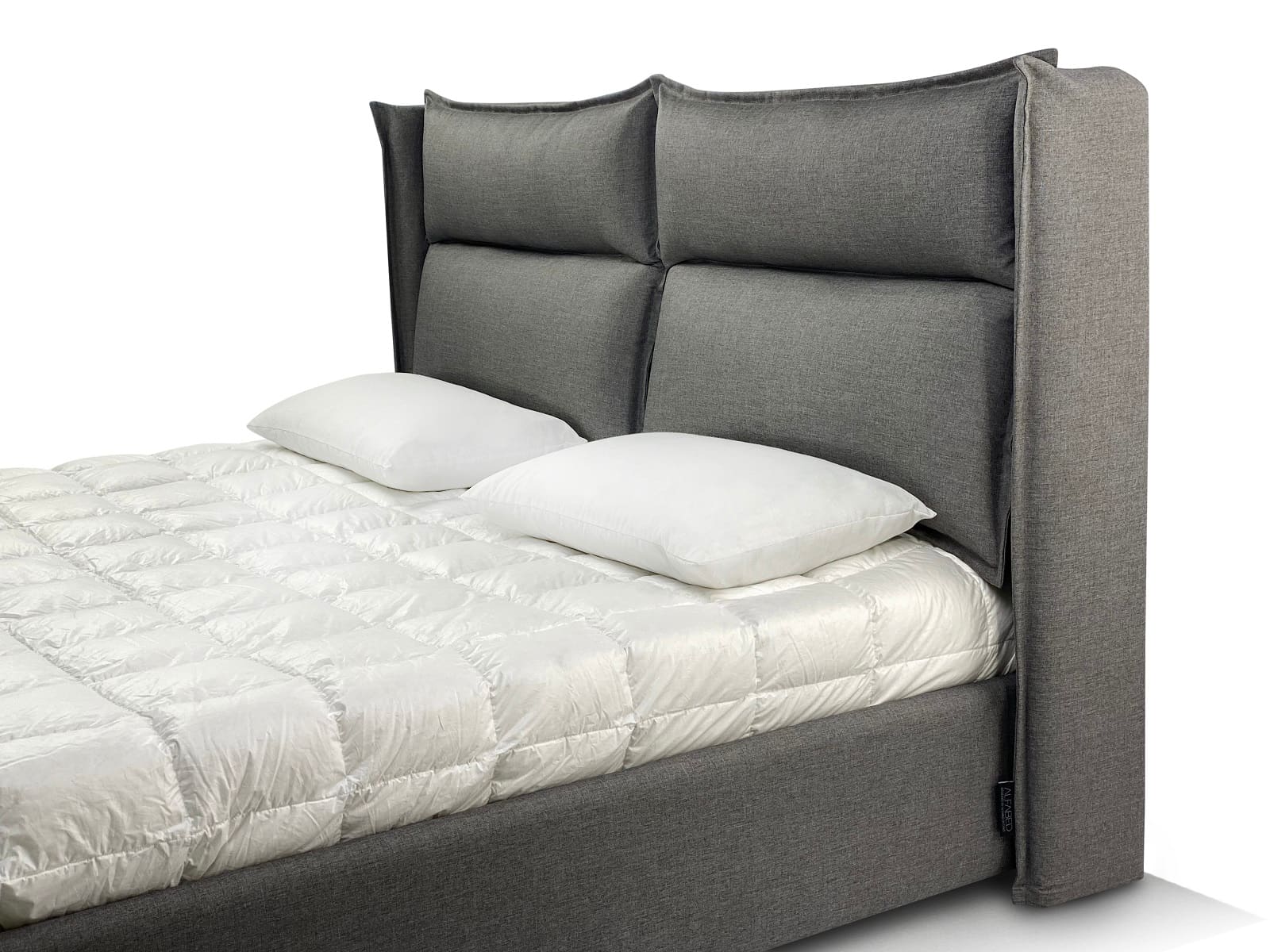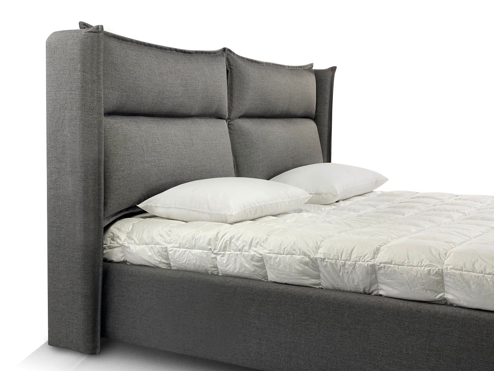 Caracteristici de design: Designul modern original al patului cu pernă creează confort în cameră și adaugă confort atunci când utilizați patul. Două perne scurte voluminoase cu cusături în jurul perimetrului conferă patului linii moi și contururi clare.