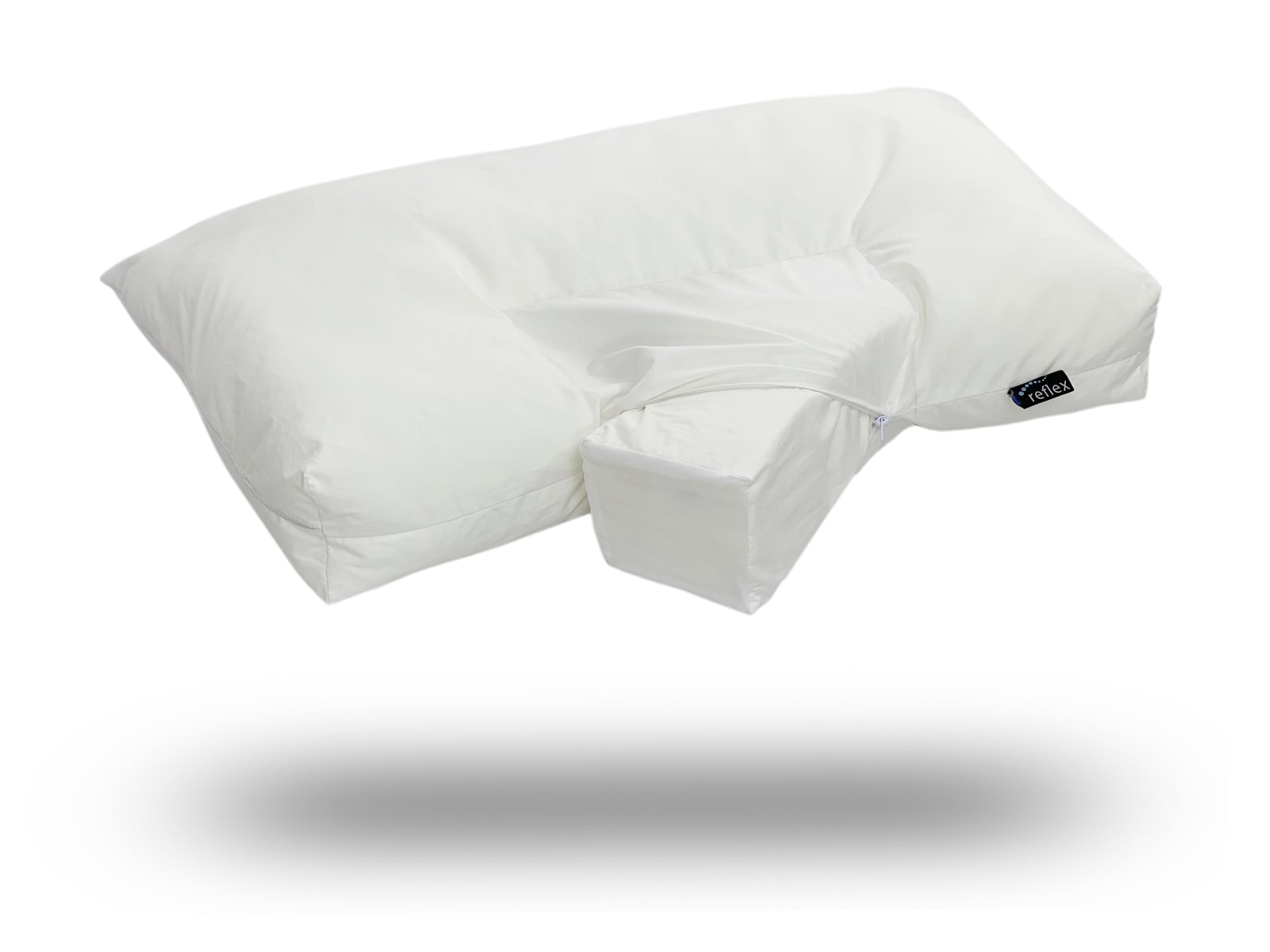 Pernă ortopedică cu umplutură hipoalergenică de eCo2 de ultimă generație și inserție detașabilă sub gât din latex natural.