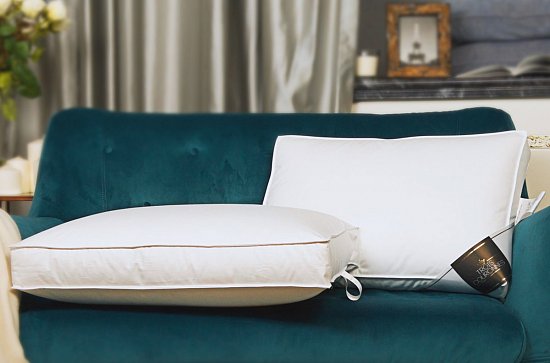 Pernă luxoasă din puf umplută cu puf de gâscă și pene cu o latură înaltă de 8 cm. Material: 100% bumbac egiptean cu capse lungi, twill ultrafin rezistent la puf, TC 234. Umplutura: 80% puf nou alb de gasca europeana, clasa I, DIN EN 12934, 20% puf nou alb de gasca. Certificate: OKO-TEX (Confidence in Textiles), textile sigure, Midecott, NoMite (grad ridicat de curățare și protecție împotriva acarienilor), TraumPass (Certified Down & Feathers) - confirmă calitatea înaltă a pufului și penei primare. Greutate umplutură: 560 gr. (date din catalog în cantitate de 50x70); 690 gr. (date din catalog în valoare de 70x70); Rigiditate: medie obișnuită. Oferă suport uniform pentru coloana cervicală în timp ce dormi pe o parte.