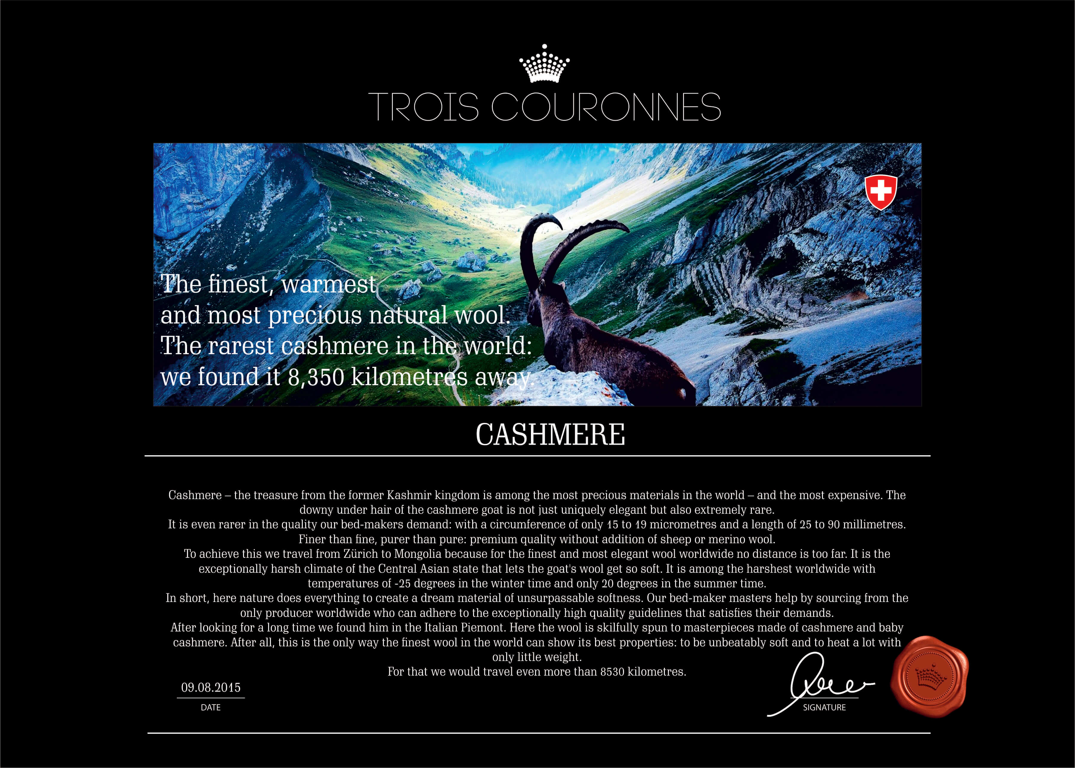 Partea 2: un strat de păr de cămilă și un strat de cașmir 100% (iarna). Cașmirul este un material natural valoros ale cărui proprietăți benefice nu necesită nicio prezentare specială.