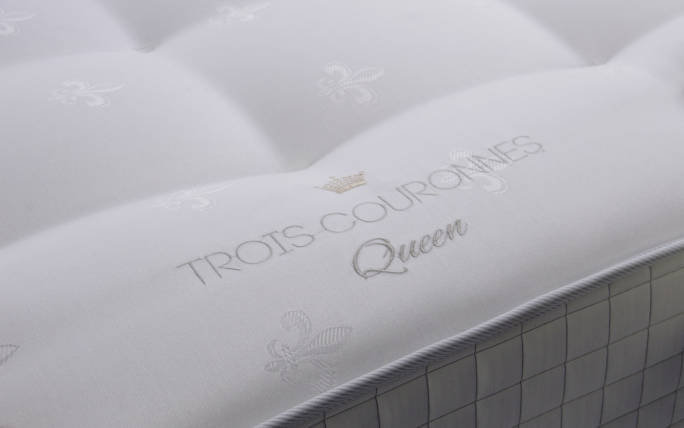 Ca bază a saltelei Trois Couronnes Queen, este utilizat un bloc din arcuri independente cilindrice cu 9 bobine, care au trecut printr-un proces de întărire electrică, care oferă protecție împotriva deformării și permite producătorului să ofere o garanție pe viață pentru blocurile de arcuri ale saltelelor.