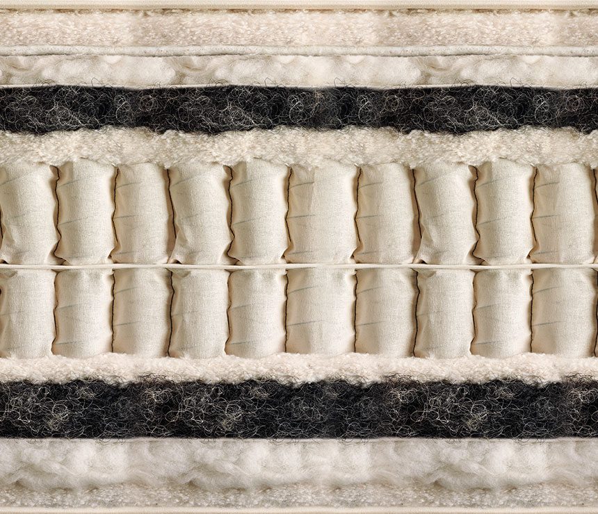 Salteaua Vi-Spring conține lâna a cel puțin patru rune întregi. Acesta este mai mult decât oferă orice alt producător. Saltea de tec este, de asemenea, făcută din lână pură de înaltă calitate, care este țesută în West Yorkshire.