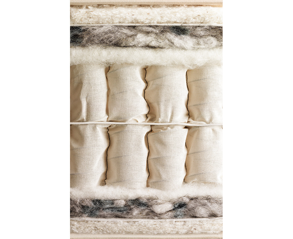 Stratul inferior este un amestec de lana moale, bumbac alb si par natural de cal, cusute manual printrun strat rezistent de in.