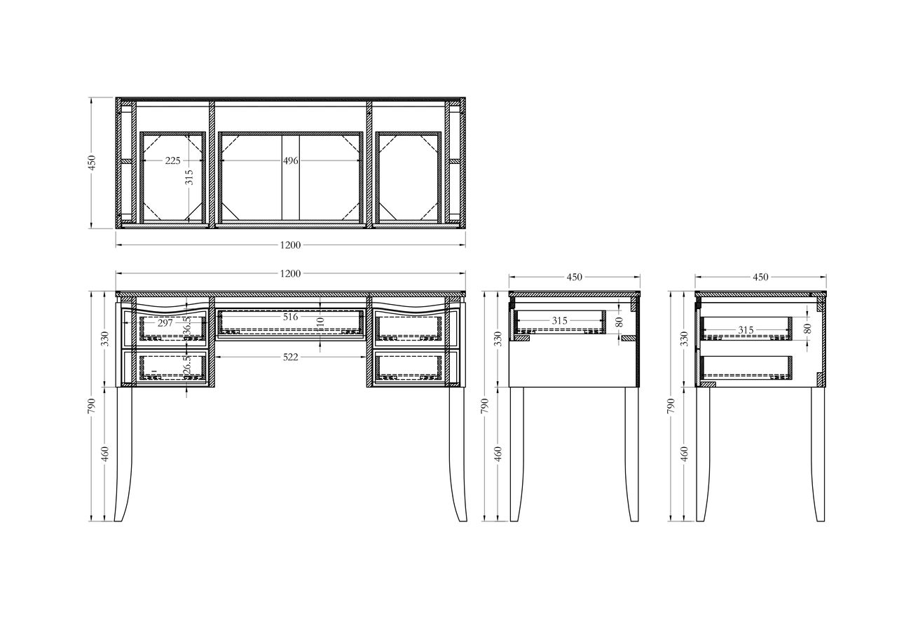 Столик туалетный 5 ящ. отделка зеркальная KFG127