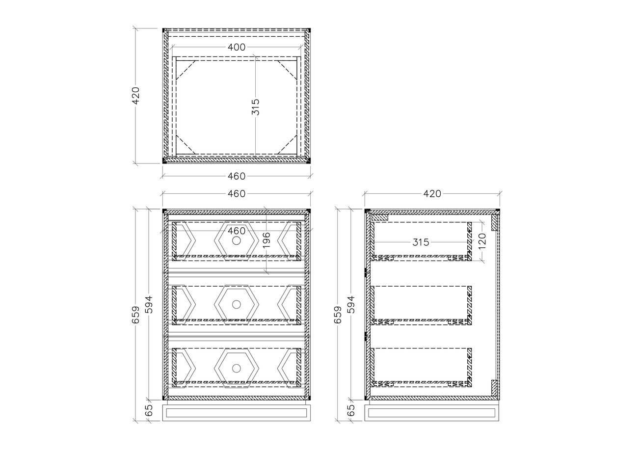 Тумба зеркальная 3 ящика KFG044