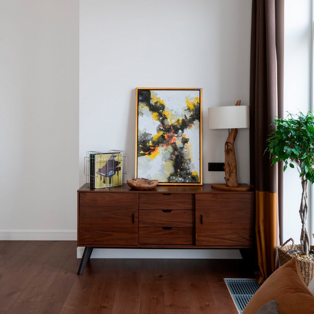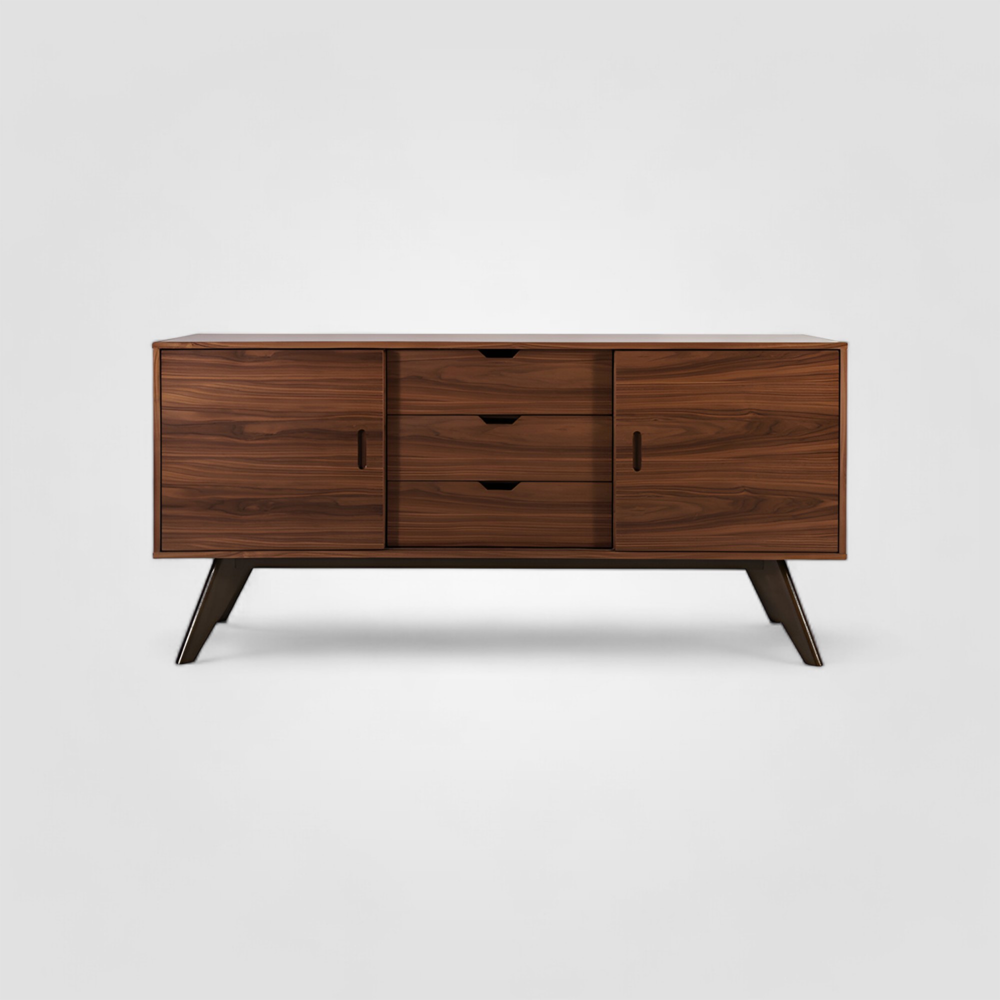 Вместительный комод с тремя выдвижными ящиками и полками. Выполнен из массива тропического дерева и шпона грецкого ореха. Современный, но в то же время сдержанный дизайн комода позволяет вписать его в любой интерьер. Оригинальные тонкие ножки расположены под углом и придают живость и яркость строгому на вид шкафу. Мягкий ход и удобное расположении дверей комода создают удобство использования. Строгие линии и теплый цвет дерева дополнят пространство гостиной, спальни или холла. Комод смотрится интересно как самостоятельно, так и в сочетании с другими предметами коллекции.