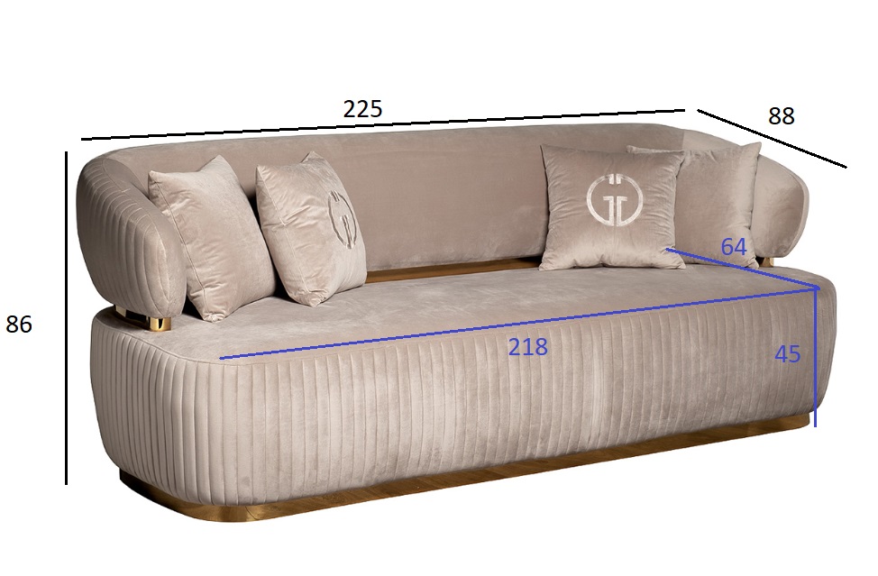 Диван Glarus трехместный, велюр серый 102AN-DIV-1303-SER