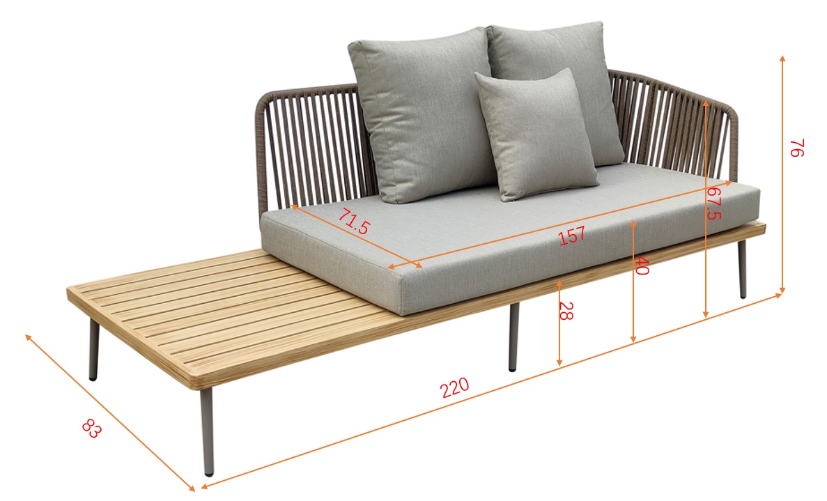 Диван трехместный правосторонний "BAYLEY" уличный серый 129KN-03046