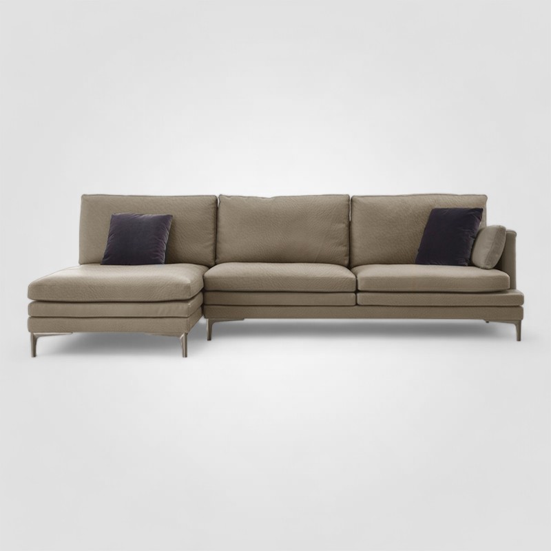 Универсальный диван FRIDA. Модули дивана надежно крепятся между собой и позволяют составлять разнообразные композиции.Ультратонкие металлические ножки. Для семей с домашними животными это незаменимый плюс: им не страшны когти вашего питомца. Комбинированная кожа (натуральная+эко). Натуральная — на сиденье и спинке дивана, чтобы основную часть модели можно было со временем отреставрировать и привести в первоначальный внешний вид,  экокожа — на внешней стороне, чтобы предотвратить истирание материала при перестановке в доме.