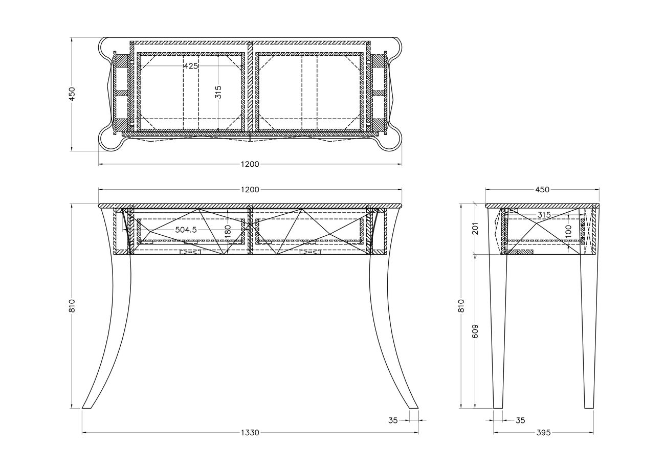 Консоль зеркальная 2 ящика KFC665