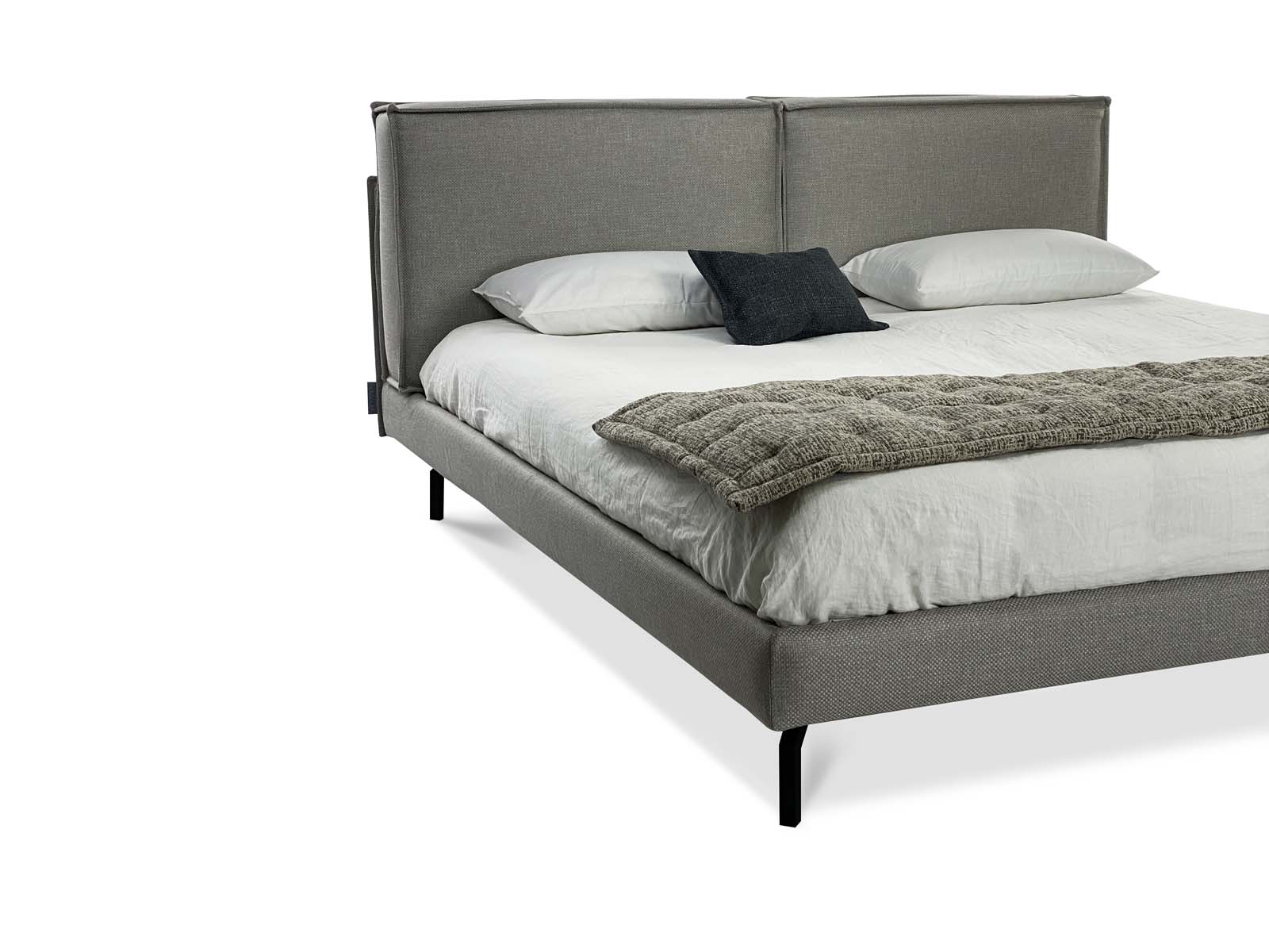 Современная итальянская кровать в минималистичном дизайне по северно-европейским мотивам.  Мягкое не высокое изголовье с уютными мягкими и пышными подушками (с высококачественным материалом мемориформ) отлично сочетается с низкими боковинами и высокими ножками высотой 15 см.  Эта кровать для тех, у кого есть немного больше пространства для глубокого изголовья и желание сочетать удобство мягкого изголовья с подушками и современные формы.  Парящая и не громоздкая модель идеально впишется в любой современный интерьер и не будет "заполнять собой все пространство" в небольшых по метражу спальнях.  Чехлы на кровати съемные, в том числе на подушках и выполняются как в тканях так и натуральной коже.