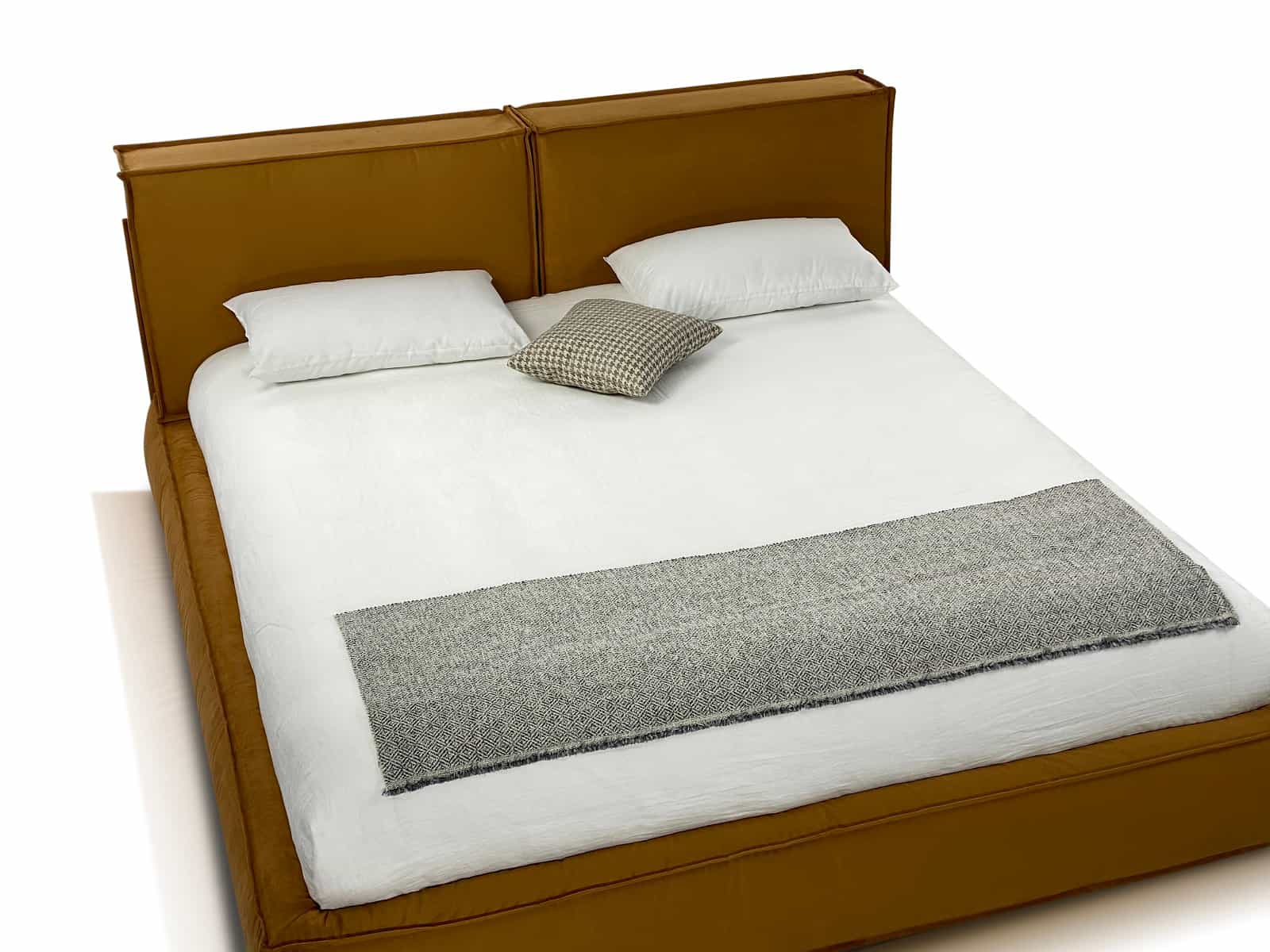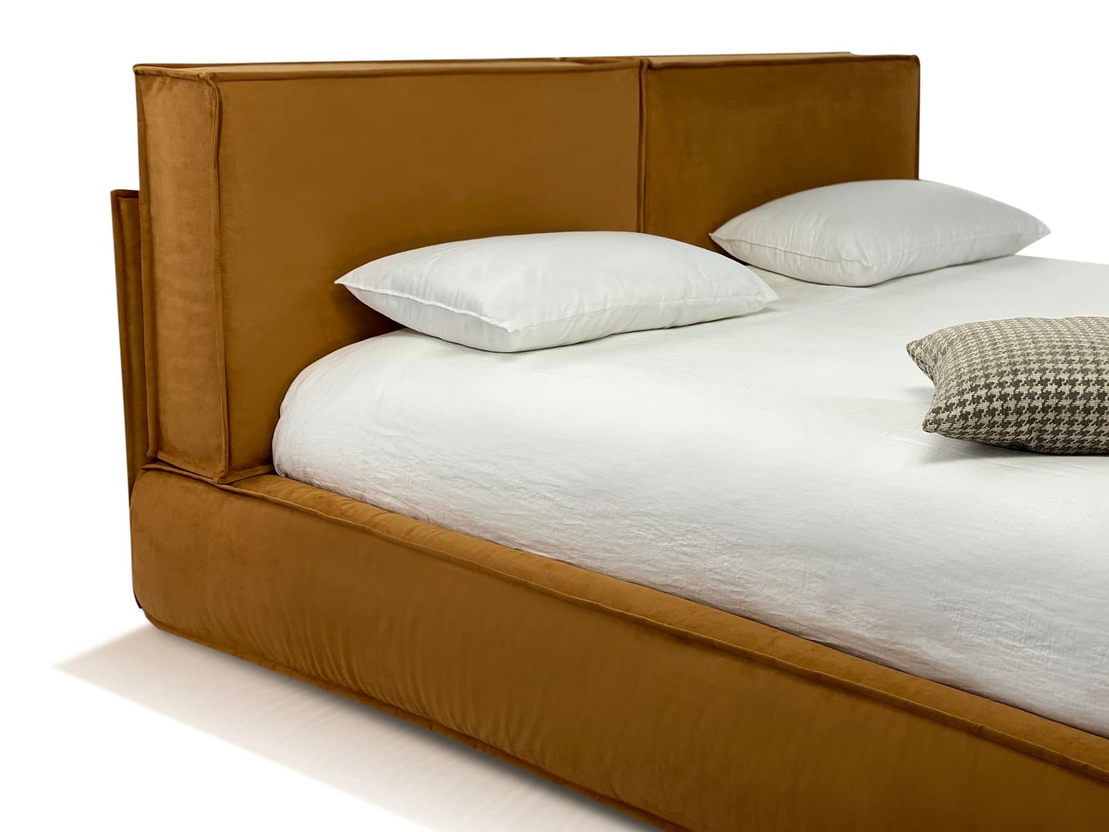 Особенности дизайна: уютная объемная кровать с 2-мя мобильными подушками в качестве изголовья.