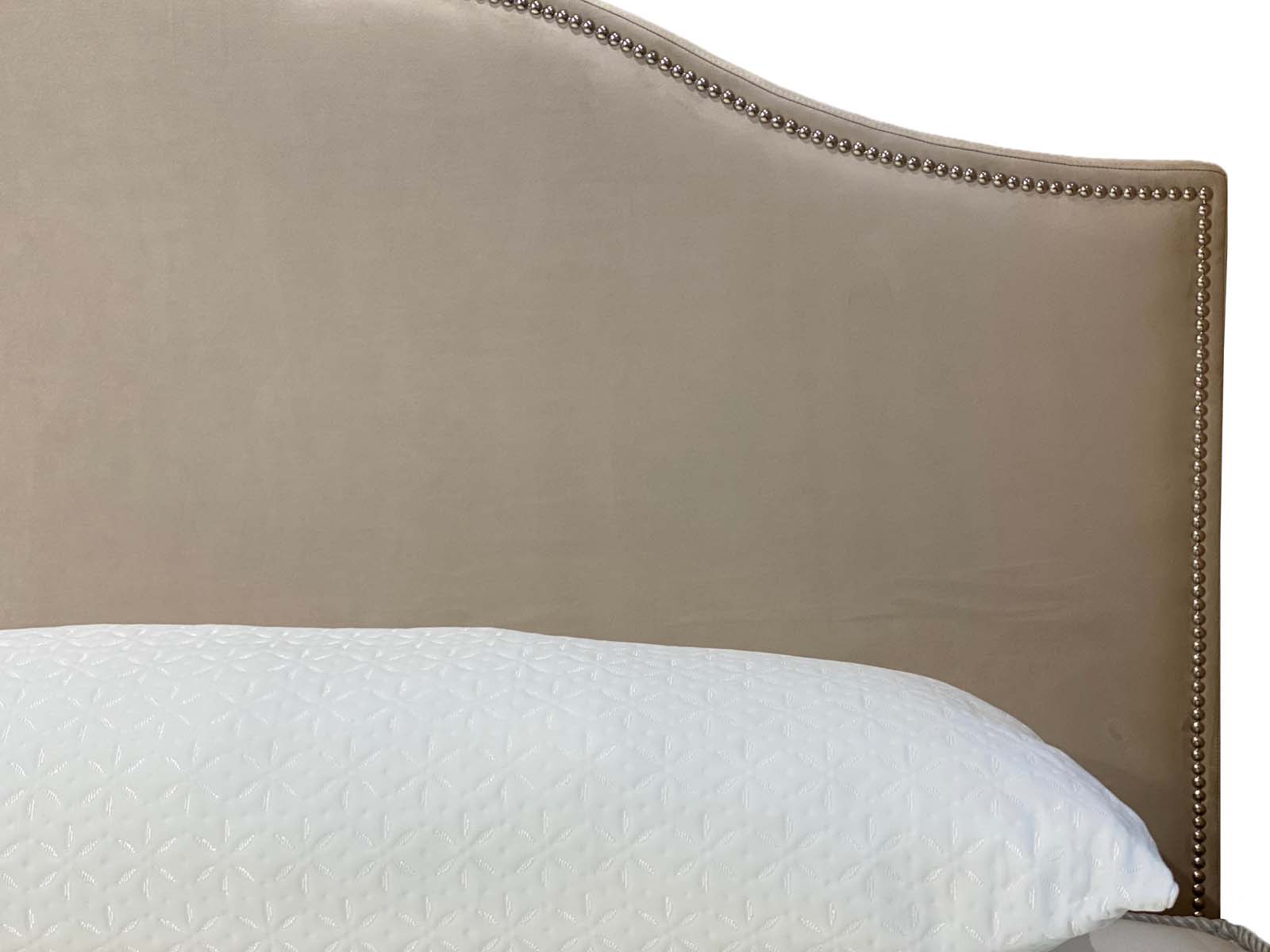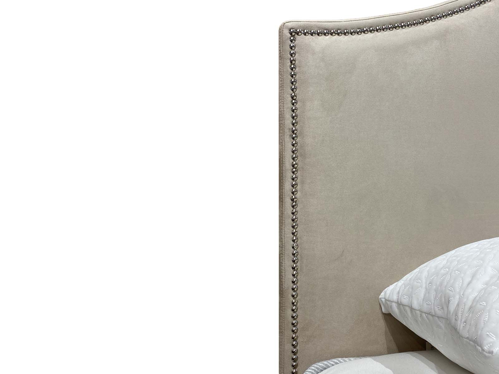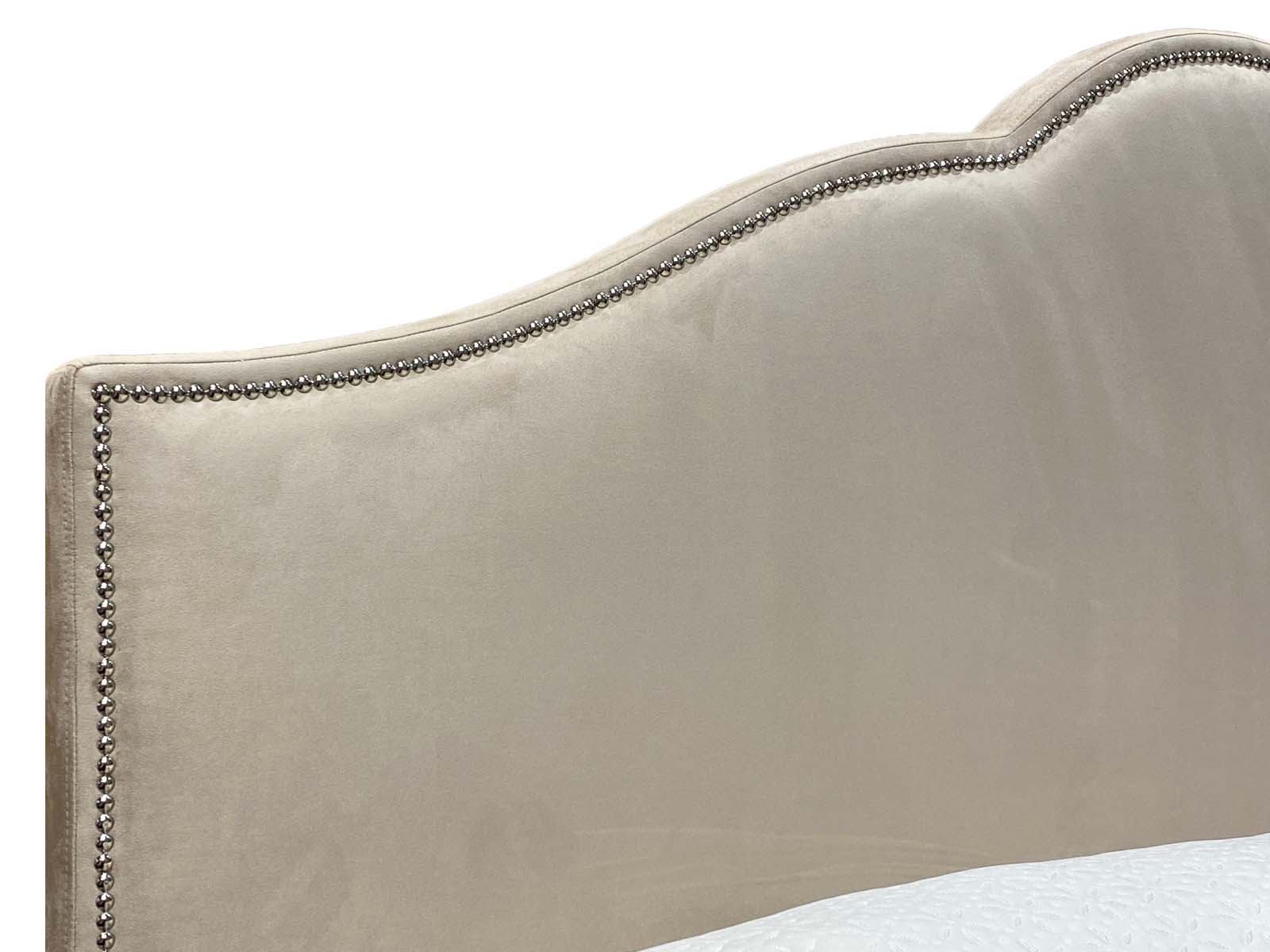 Дополнительная опция: отделка декоративными мебельными гвоздями — очень кропотливый и долгий труд.   Изголовье может быть без отделки мебельными гвоздиками.