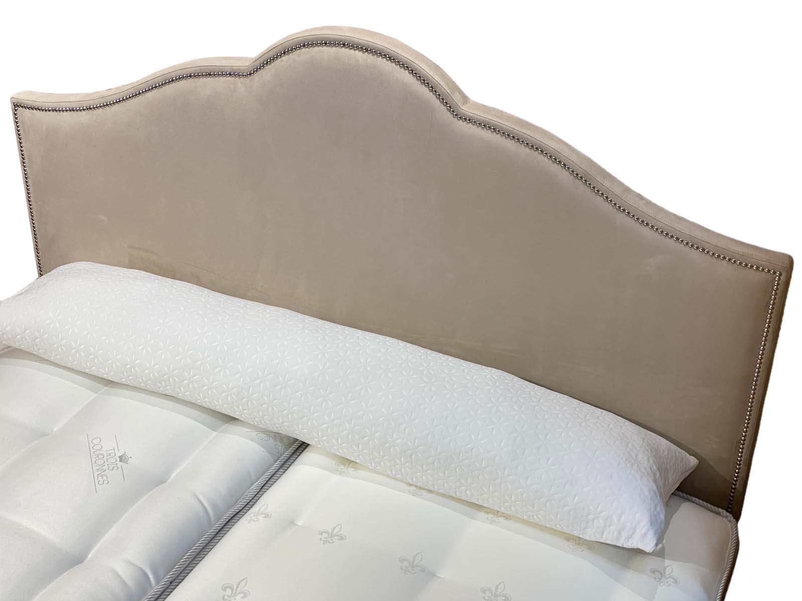 Лаконичное изголовье изогнутой формы, выполненное в американской нео классике. Конструкция кровати - состоит из изголовья и базы равной размеру спального места (матраса), что делает эту кровать очень малогабаритной. За счет конструкции, кровать прибавляет габаритные размеры только в длину за счет толщины изгловья и практически ничего не прибавляет в ширину, что делает ее незаменимым вариантом для ограниечнных пространств. Больше никаких компромиссов между размером спального места (матраса) и габаритными размерами кровати! Ни в чем себе не отказывайте с уникальной континентальной конструкцией кровати, тем более такое сплошное ровное основание надежнее решеток и может использоваться для эксплуатации высоких тяжелых американских матрасов. Съемные чехлы на базе кровати на липучках (можно чистить). Габаритная прибавка к ширине спального места (матраса) по изножью базы всего - 2 см., по изголовью всего - 4 см. Изготавливается в любых обивках на выбор на заказ.