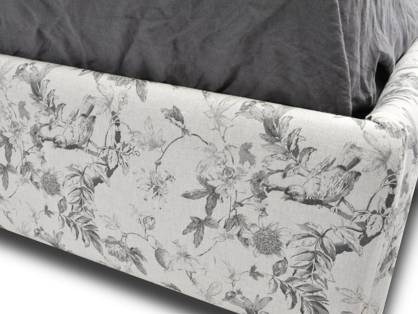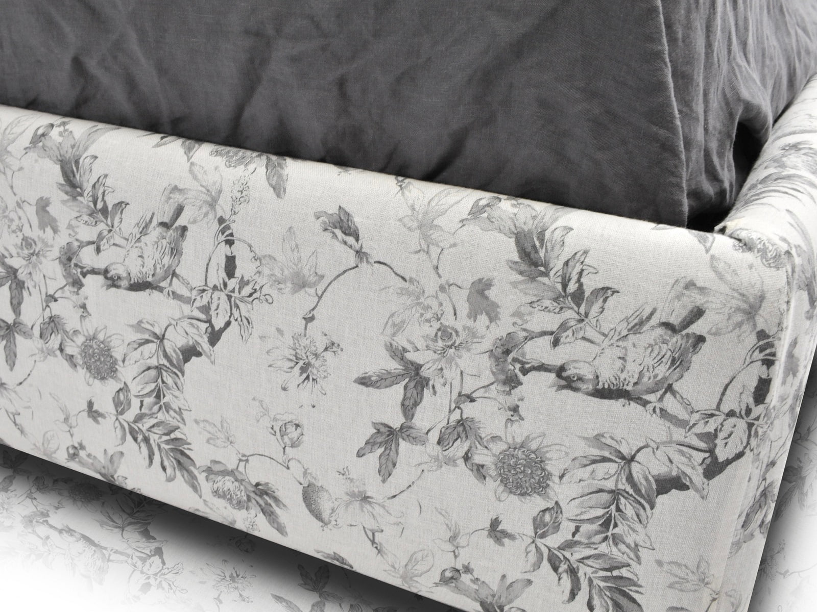 Кровать на фото выполнена в обивке из 100% натурального льна  с дизайном Прованс, что очень большая редкость!