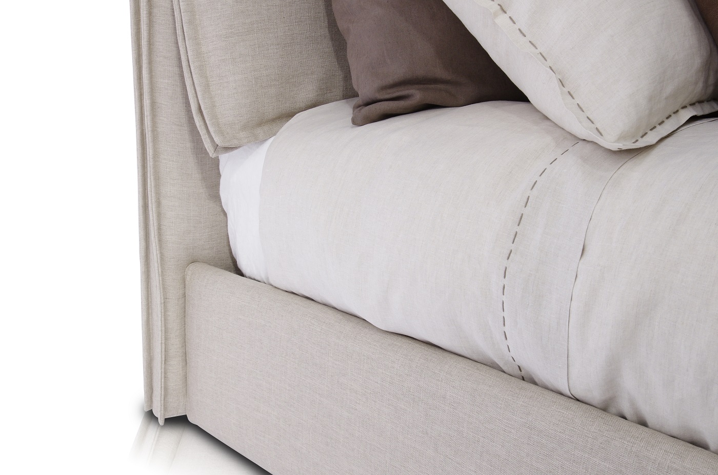 Кровать на фото выполнена в обивке из 100% натурального льна, что очень большая редкость!