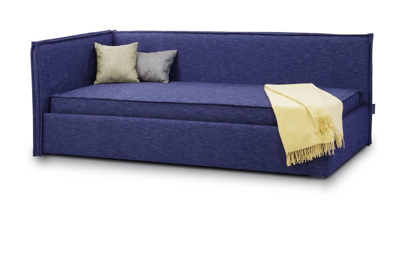 Отличительной опцией кроватей Alfabed является съемная чехольная система на липучках. Это означает, что кровать имеет 2 слоя обивки: внутреннюю обивку-основу (не съемную) и внешнюю декоративную из мебельной ткани (съемную). Чехлы из декоративной мебельной ткани на липучке и их можно снимать и надевать не ограниченное кол-во раз. Таким образом декоративные чехлы можно почистить, постирать (в зависимости от типа выбранной ткани) и вовсе заменить на ткань другого цвета и фактуры со временем. Также, при необходимости Вы сможете заказать чехол на Вашу модель кровати в будущем, фабрика гарантирует производство чехлов для своих кроватей, даже если модель кровати снята с производства, на протяжении 20 лет после продажи. Дизайн кровати-дивана может быть выполнен с двумя (как на фото), так и тремя спинками (с дополнительной наценкой - уточняйте у менеджеров). Диван может исполняться в тканях различных цветов, фактур и дизайна. Габаритные размеры добавляют +15 см по длине, +12 см к ширине выбранного спального места Стандартные ножки из АБС-пластика черного цвета высотой 60 мм. Доступны дизайнерские опоры разной высоты за дополнительную плату. Информацию по изготовлению изделий нестандартных размеров уточняйте у менеджеров. Угловая кровать-диван с двумя спинками – выполняется как в правостороннем, так и в левостороннем варианте. Идеальный вариант для встраивания в угол комнаты. Особенности дизайна: малогабаритный размер, лаконичная форма Цена указана за базовое изделие (диван в декоративном чехле, без учета стоимости матрасов и декоративного чехла на матрас).