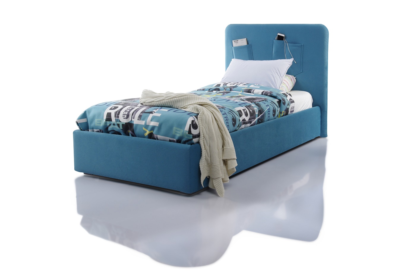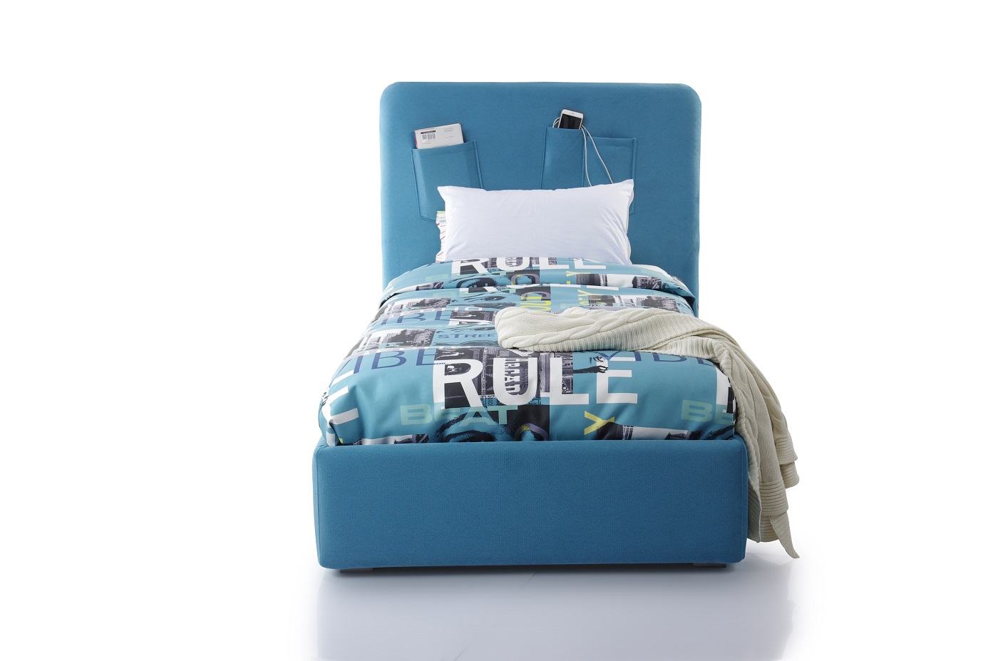 Особенности дизайна: функциональные карманы на изголовье кровати, в которые можно положить любимую игрушку или гаджет.