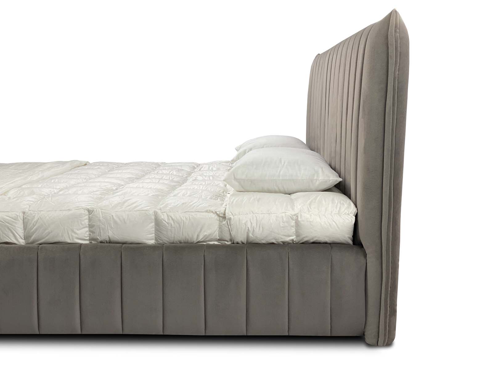 Каждая полоса объемная и мягкая за счет уникального наполнителя Memoryform, который прекрасно держит объем и форму.  За счет того, что боковины кровати также выполнены по технологии объемной стежки на материале с памятью формы Memoryform - все углы кровати очень мягкие. Представьте, как уютно будет прислониться к спинке изголовья, читая книгу перед сном, вы ощутите приятное погружение и вместе с тем расслабление.