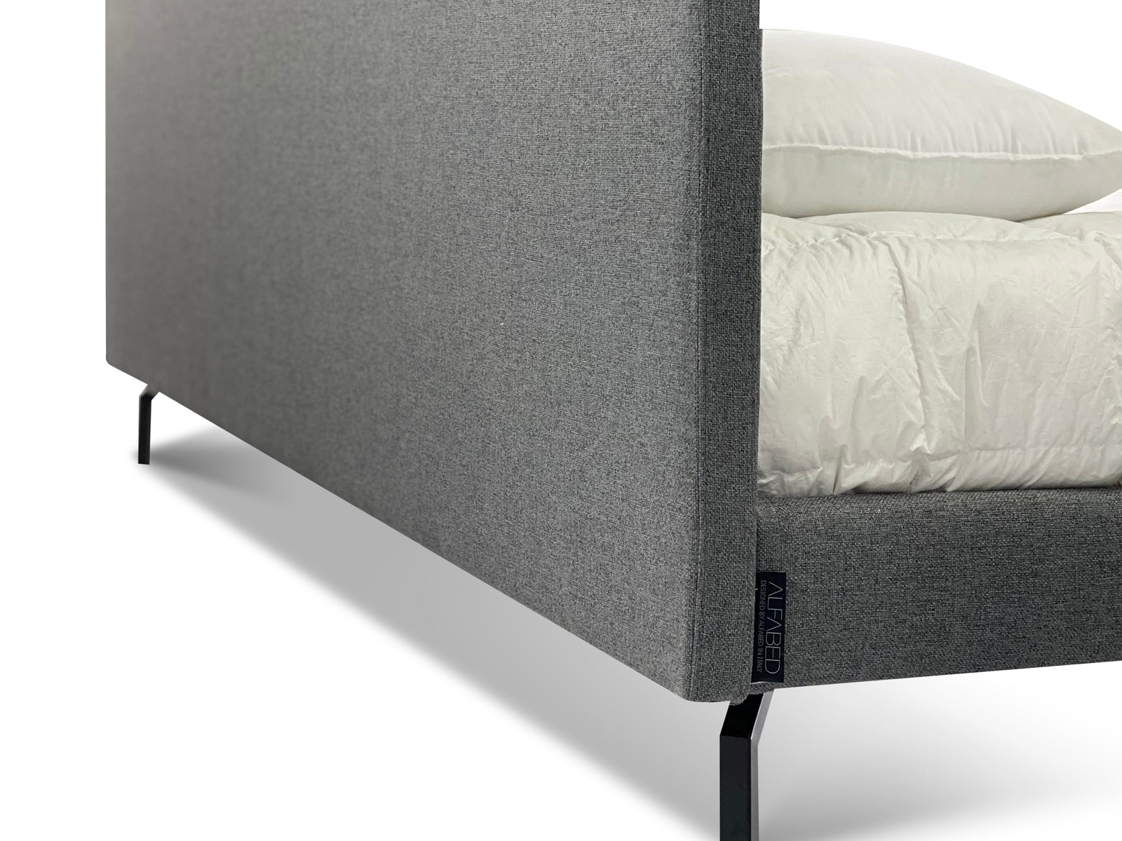 Лаконичный дизайн по скандинавским мотивам - делает эту кровать малогабаритной. Модное не высокое изголовье, отлично сочетается с узкими боковинами и изящными ножками высотой 15 см. Большой просвет под кроватью облегчает уборку при помощи робота-пылесоса. Парящая, минималистичная модель, значительно экономит свободное пространство и идеально впишется в любой современный интерьер. Максимально «незаметная» кровать, которая раствориться в Вашем интерьере. Большой выбор тканей и цветов отделки. Чехлы съемные на царгах (на липучках).