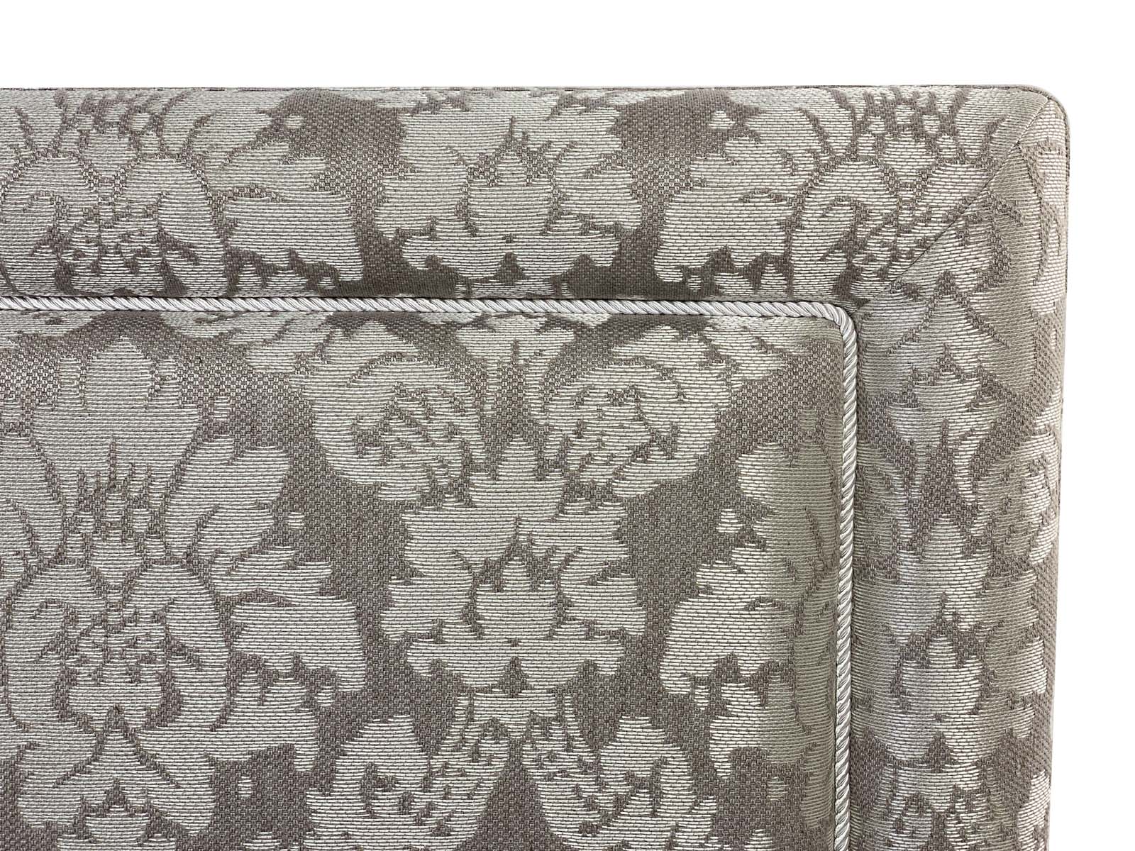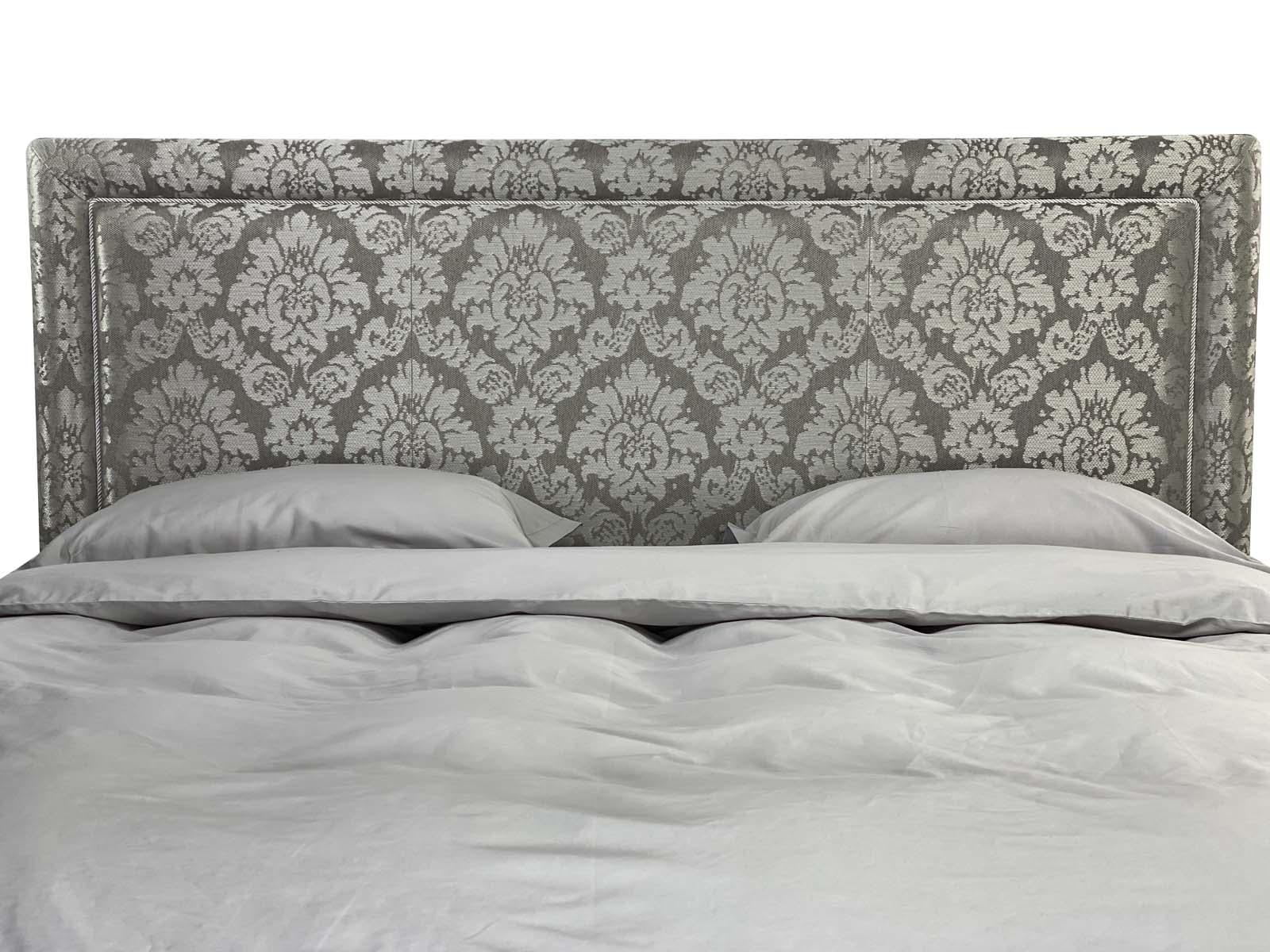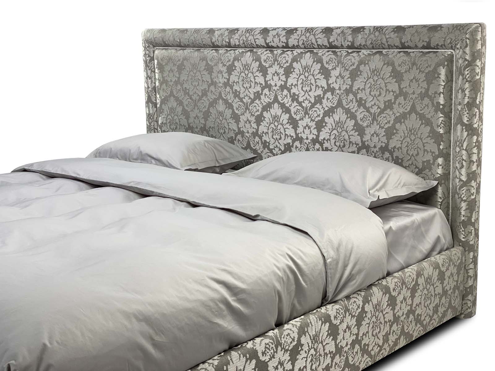 Строгое изголовье выполненное в стиле нео классики, подойдет практичным людям, предпочитающим минималистичные интерьеры. Изголовье украшено ровным обрамлением в виде рамы как у картины и дополнительно декорированно мебельным кантом (дизайн канта подбирается индивидуально).  Изголовье декорированно в ручную мебельным витым кантом, что придает дизайну уникальность и утонченность, а  кровати особенный классический шарм. Рама на изголовье может быть выполнена в другой, отличной от основной ткани.  Четкая лаконичная форма, позволяющая вписать кровать в любой современный либо классический интерьер.