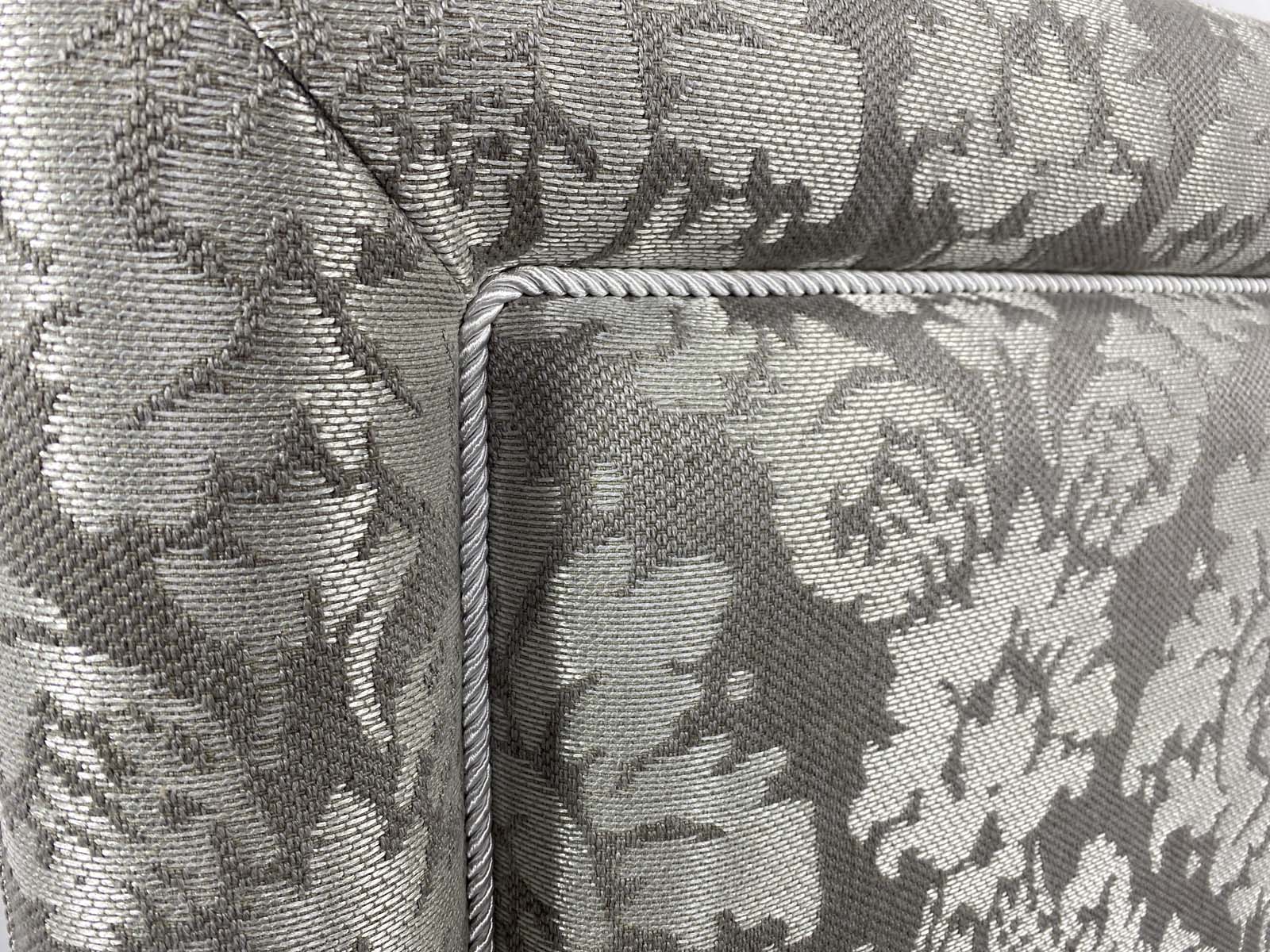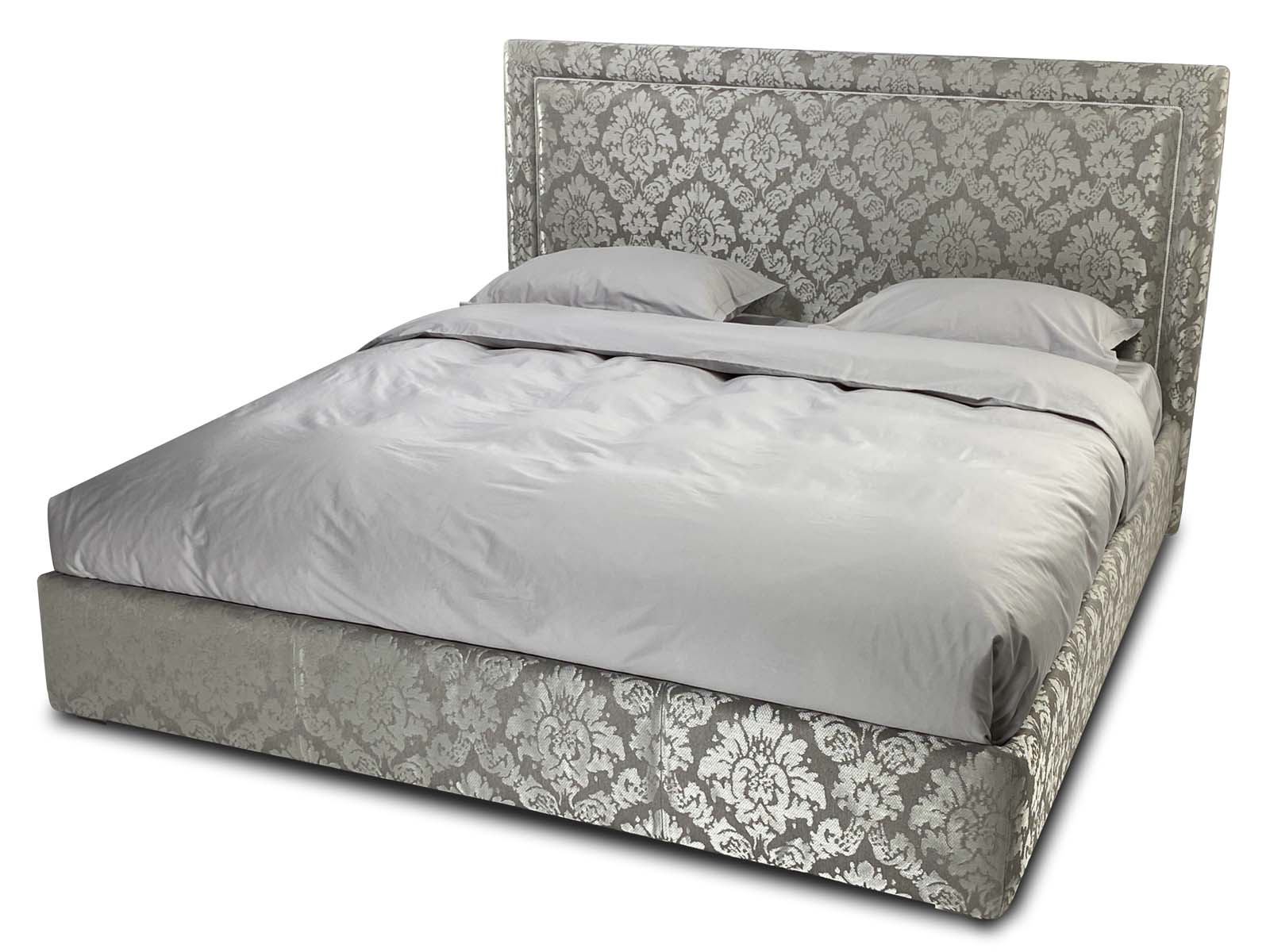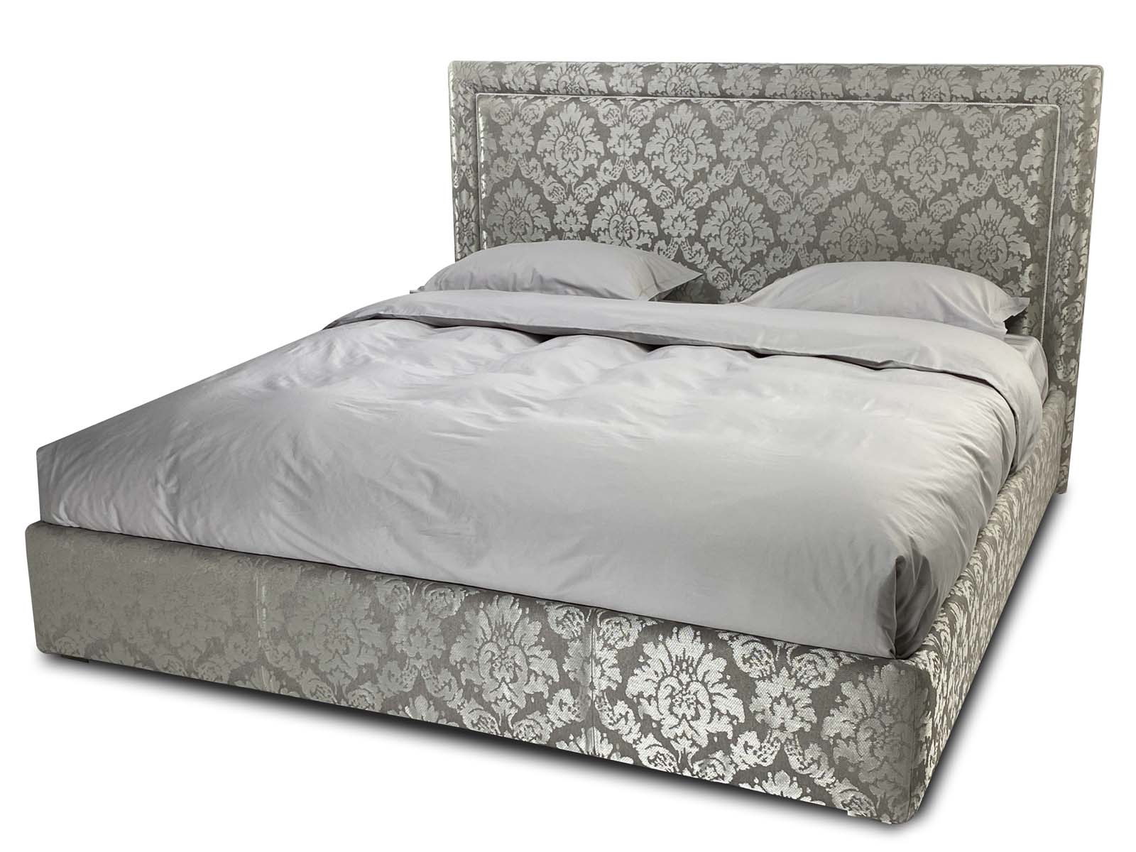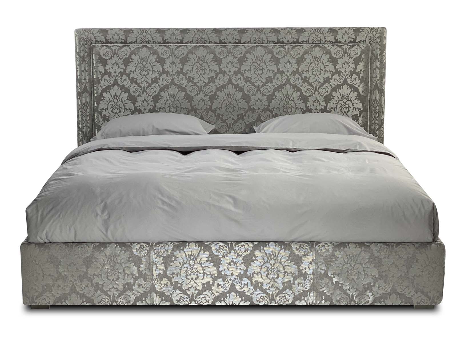 Строгое изголовье выполненное в стиле нео классики, подойдет практичным людям, предпочитающим минималистичные интерьеры. Изголовье украшено ровным обрамлением в виде рамы как у картины и дополнительно декорированно мебельным кантом (дизайн канта подбирается индивидуально).  Изголовье декорированно в ручную мебельным витым кантом, что придает дизайну уникальность и утонченность, а  кровати особенный классический шарм. Рама на изголовье может быть выполнена в другой, отличной от основной ткани.  Четкая лаконичная форма, позволяющая вписать кровать в любой современный либо классический интерьер.
