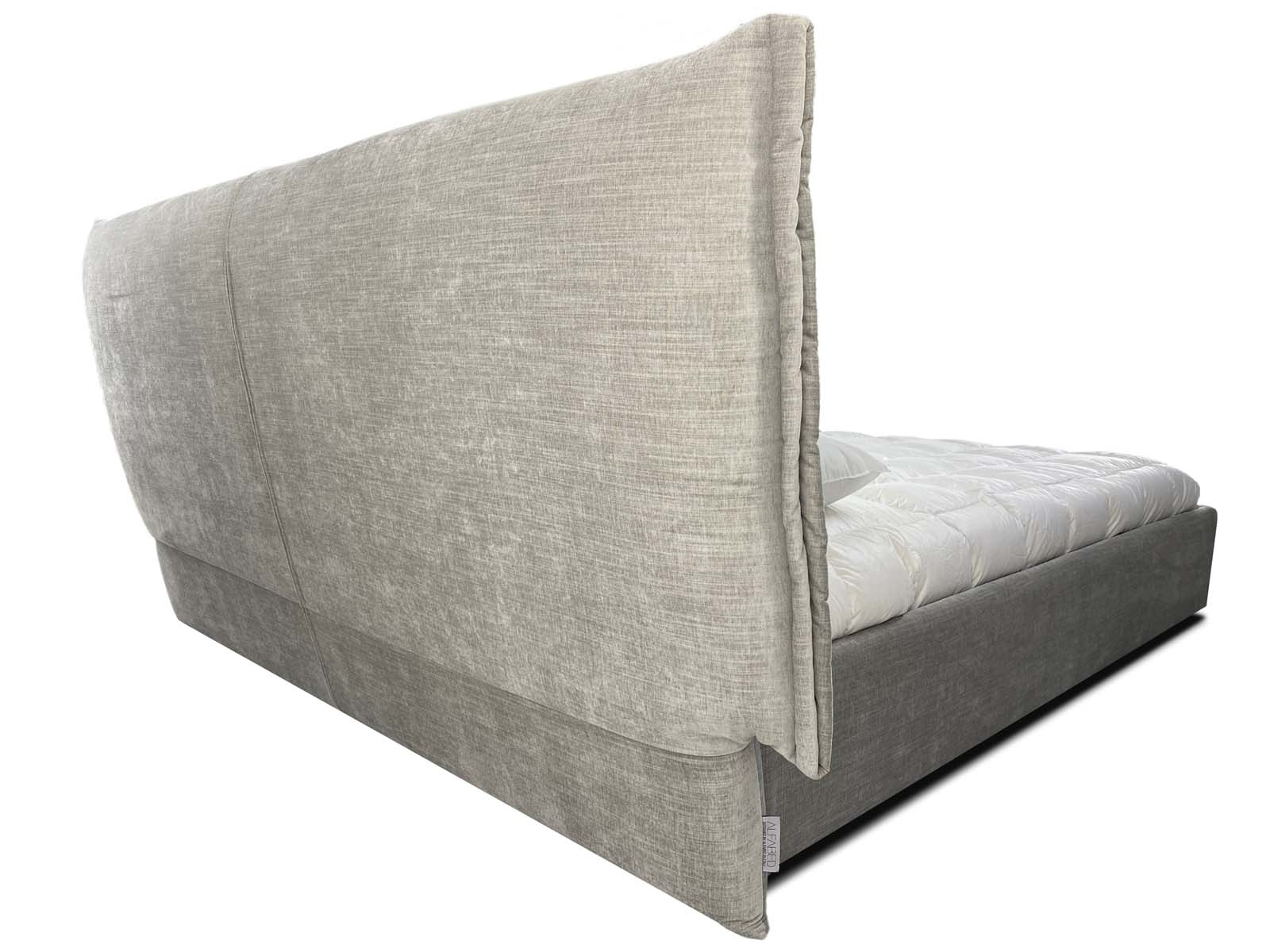 Обратите внимание!  Кровать на картинке представлена в матовом велюре (Cat.E), стоимость изделия сильно отличается в зависимости от выбранной ткани.