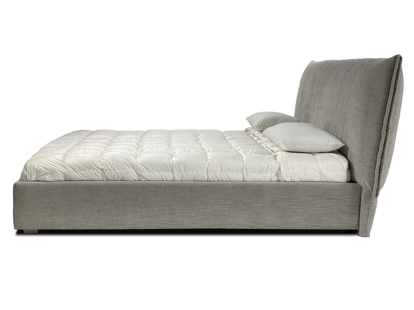 Обратите внимание!  Кровать на картинке представлена в матовом велюре (Cat.E), стоимость изделия сильно отличается в зависимости от выбранной ткани.