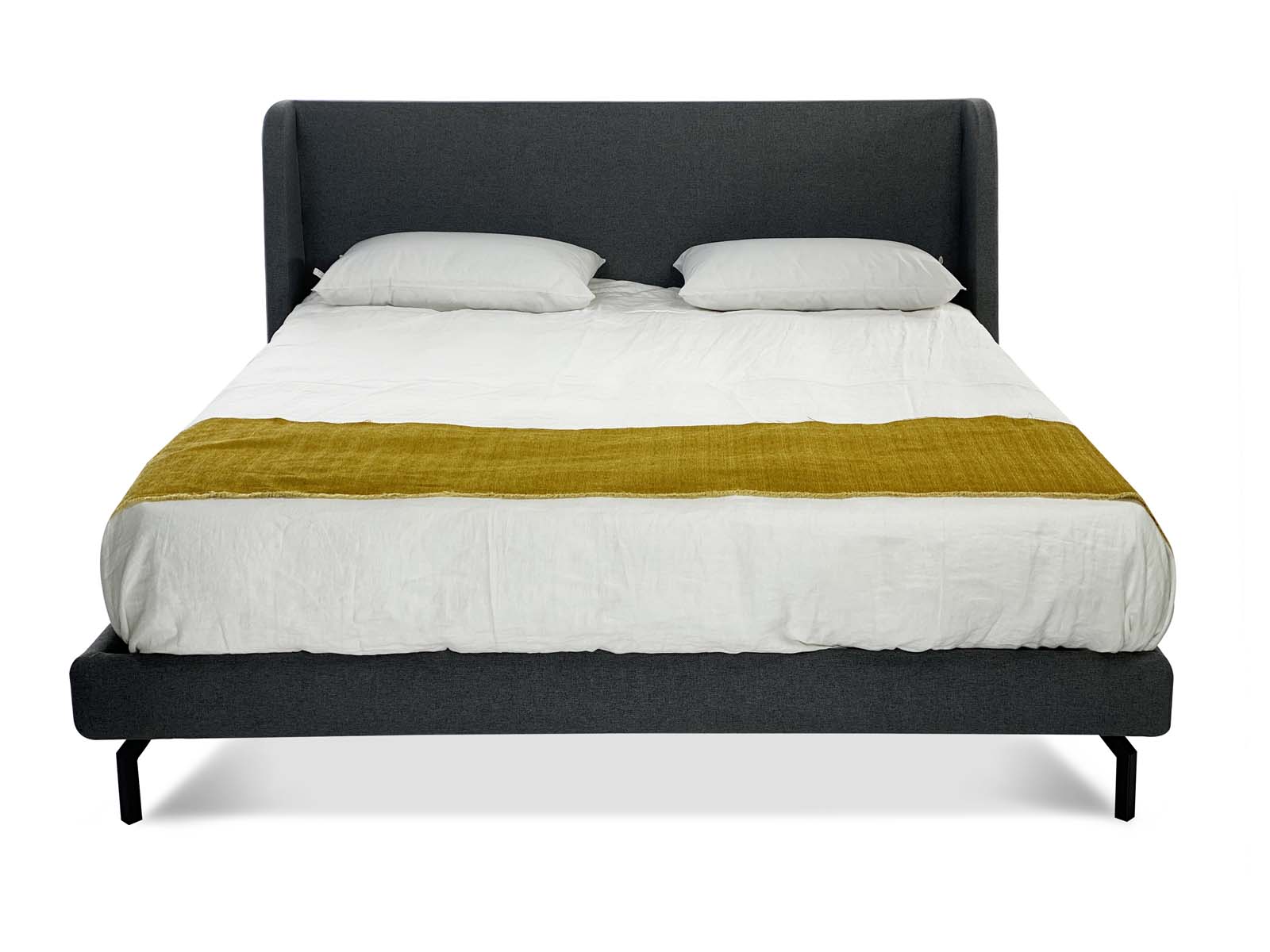 Модное не высокое изголовье, отлично сочетается с узкими боковинами и изящными ножками.