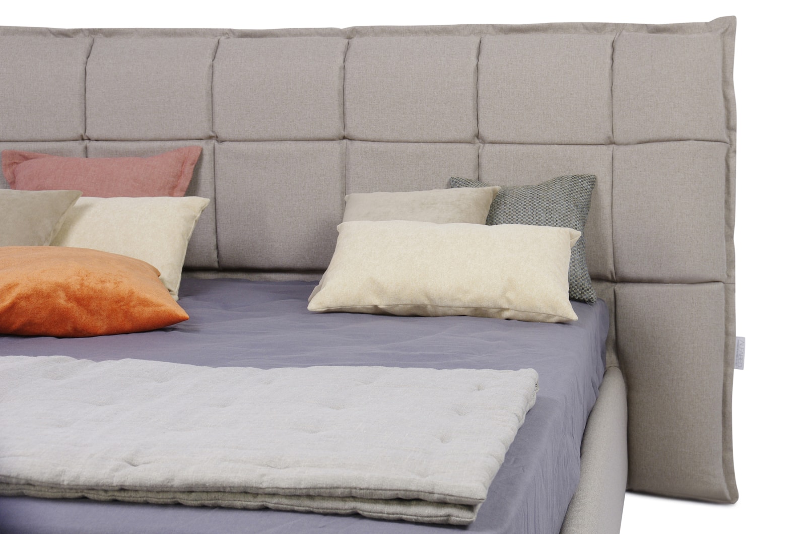 Каждый квадратик объемный и мягкий за счет уникального наполнителя Memoryform, который прекрасно держит объем и форму.  За счет того, что боковины кровати также выполнены по технологии объемной стежки на материале с памятью формы Memoryform - все углы кровати очень мягкие. Представьте, как уютно будет прислониться к спинке изголовья, читая книгу перед сном, вы ощутите приятное погружение и вместе с тем расслабление.