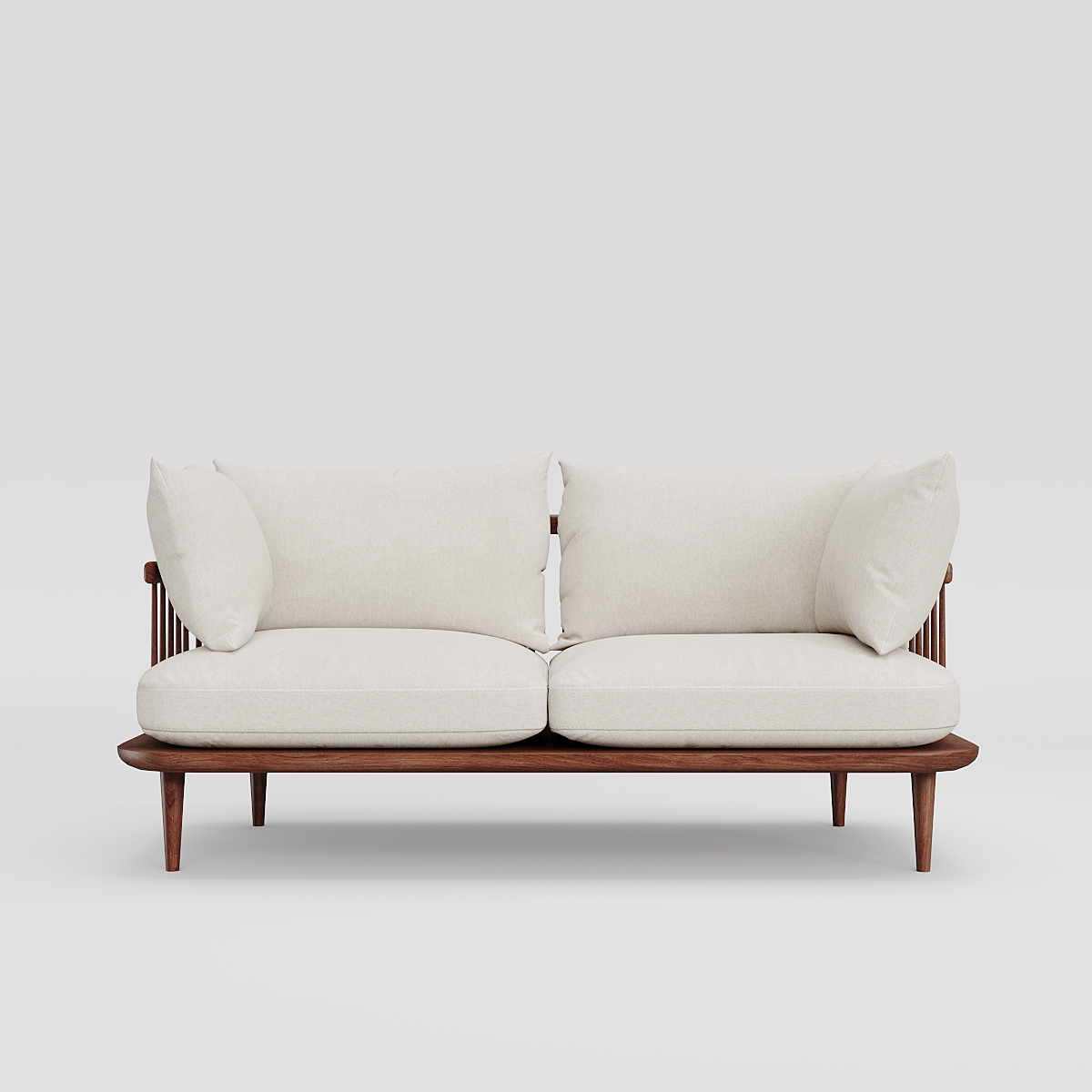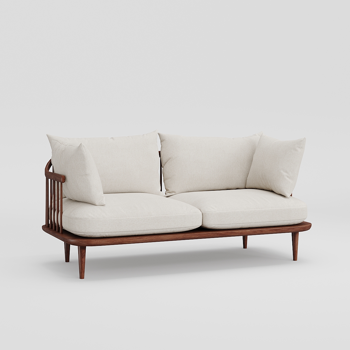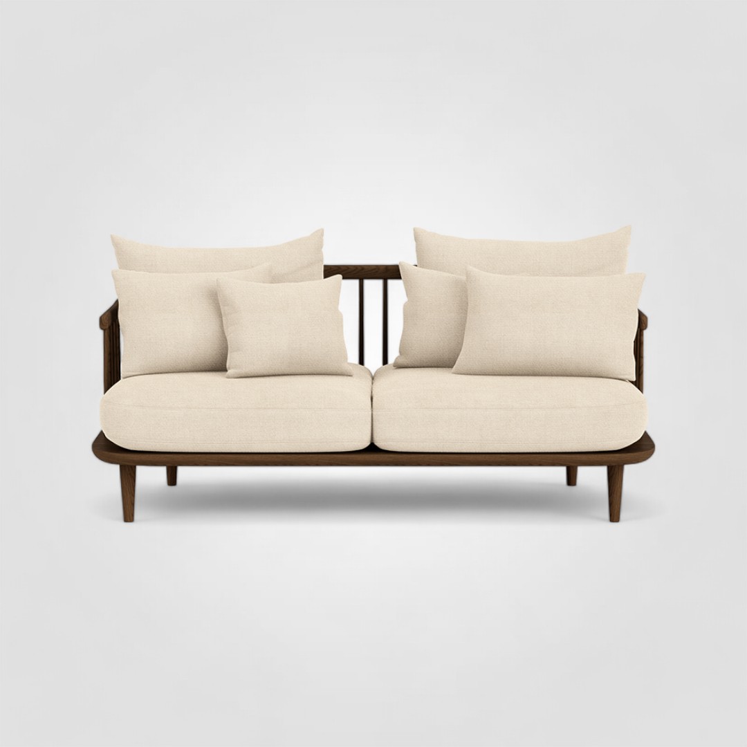 Просторный двухместный диван со съемными подушками в скандинавском стиле. Знаковое для стиля нордик лаконичное основание с решетчатой спинкой выполнено из массива ясеня. Мягчайшие, пышные подушки сиденья и спинки с обивкой из фактурной ткани молочного цвета дополняют светлый тон дерева. Диван привнесет атмосферу тепла и комфорта в пространство гостиной, станет центральным элементом в зоне отдыха на крытой террасе загородного дома. Может быть стилистически дополнен креслом из одноименной коллекции.