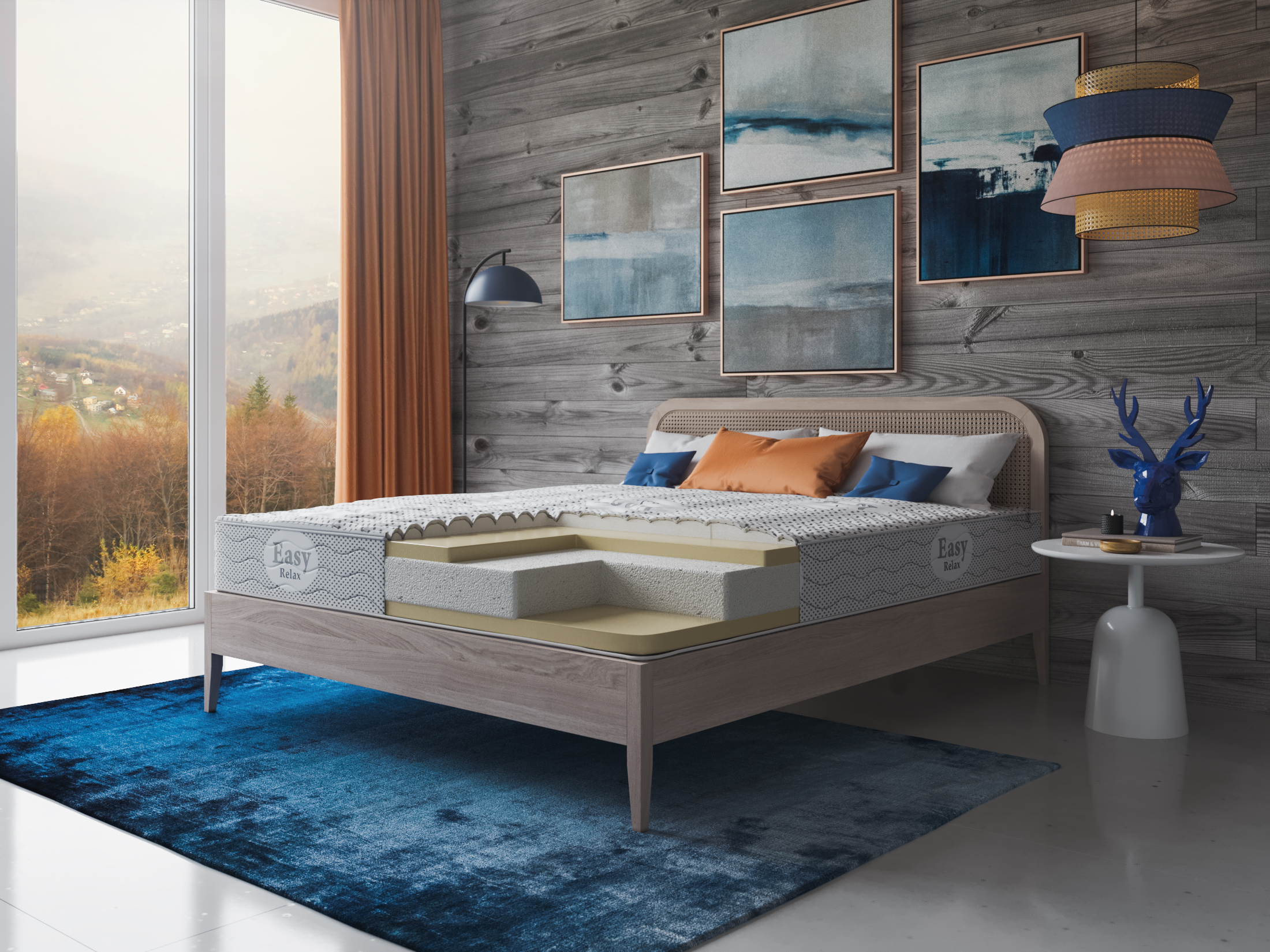 **Матрас Evita Transform Visco Duo 4** из линейки **Evita Transform** — это беспружинный матрас с повышенной степенью комфорта, который сочетает в себе материалы с памятью формы с обеих сторон и ортопедическую пену в основе. Матрас состоит из трех толстых слоев различных ортопедических пен: трехзонального монолита искусственного латекса и двух слоев пены с памятью формы, что обеспечит вам отличный отдых и поддержку.