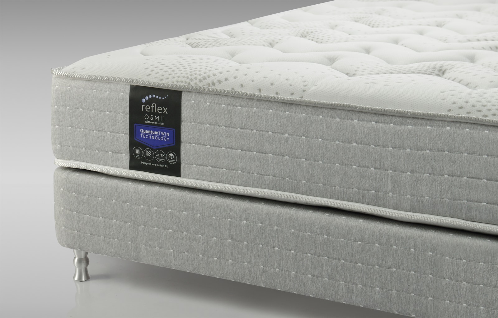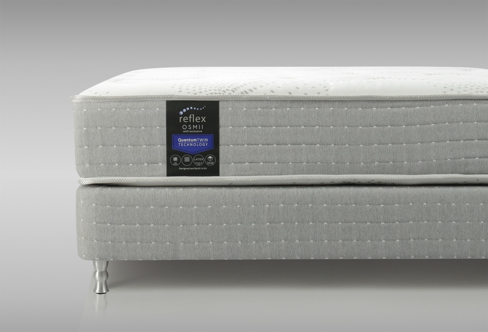 В основе матраса Reflex Osmii используется система пружин «Twin System» (твин систем) – это система двойных пружин (пружина в пружине), внутренняя(вторая) пружина по высоте на 30% ниже внешней и включается в работу во время интенсивной нагрузки, как дополнительная поддерживающая опора. Именно поэтому данная система пружин идеально подходит для супругов с существенной разницей в весе. Более тяжелому партнеру не мягко, так как на него работает и внешняя и внутренняя пружины, а более легкому не жестко – так как в поддержке участвуют только внешние более высокие пружины, а внутренние пружинки вступают в работу, только во время необходимости, напр. в случае увеличения интенсивности нагрузки.
