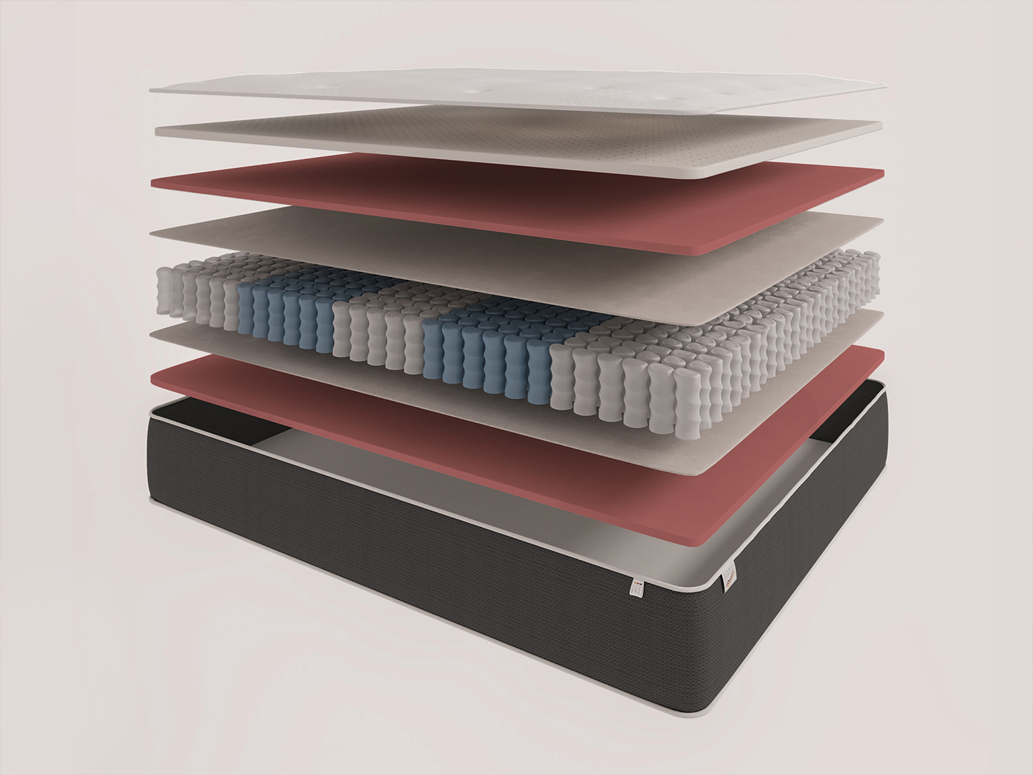 Чехол из трикотажа VolumeQuilt 2 см. натуральный латекс 2 см. пена Xenuloc® Polycell Medium 12 см. независимый пружинный блок Protect Springs™ 2 см. пена Xenuloc® Polycell Medium Система усиления края матраса PROEdge